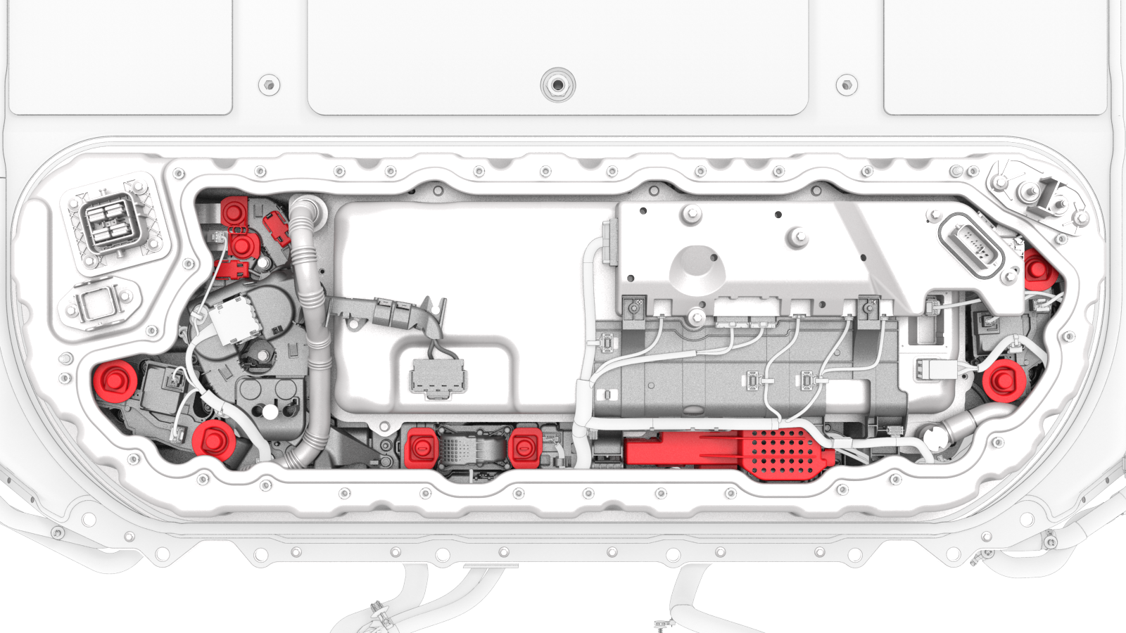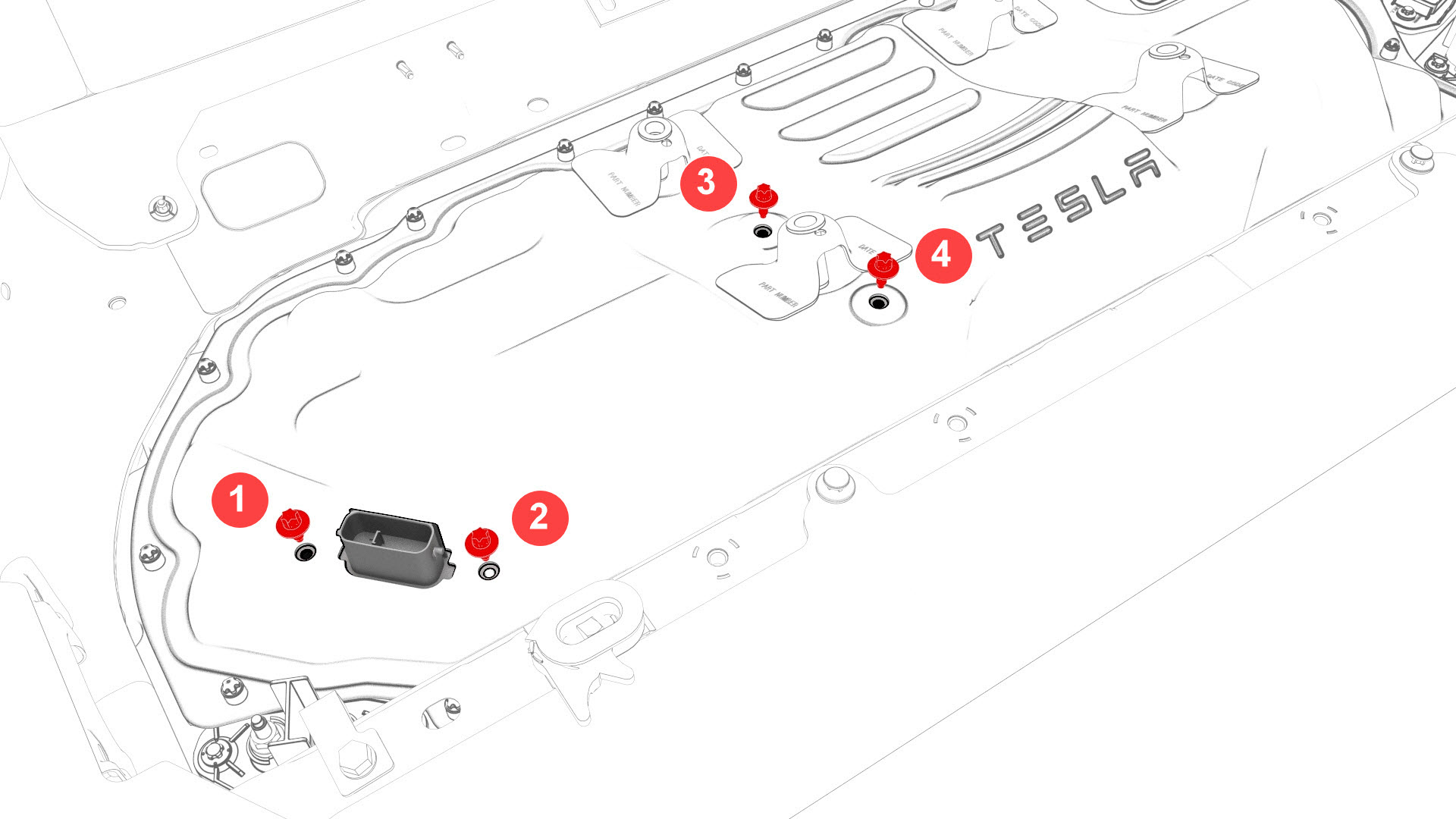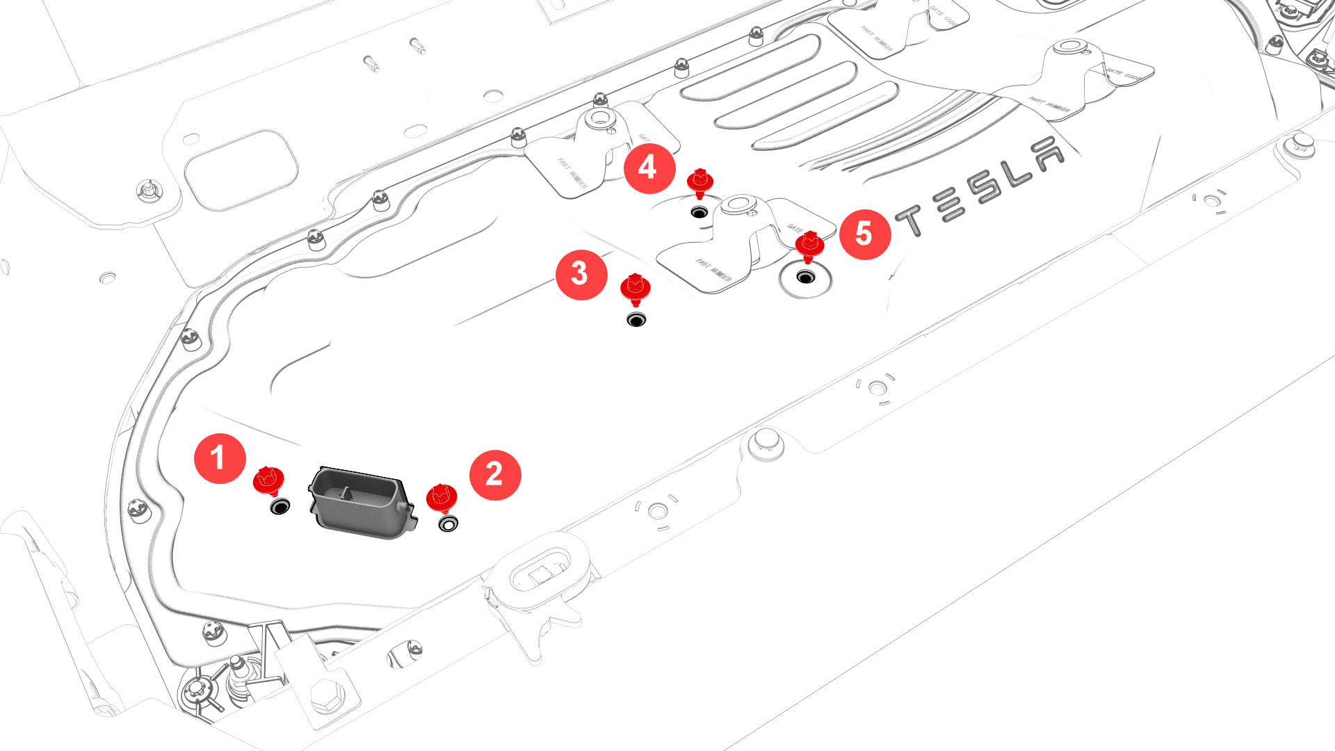 ![]() | 5 | Install the penthouse cover on the HV battery, and then hand-tighten the bolts. Note: Different penthouse cover revisions have 28, 18, or 16 bolts.