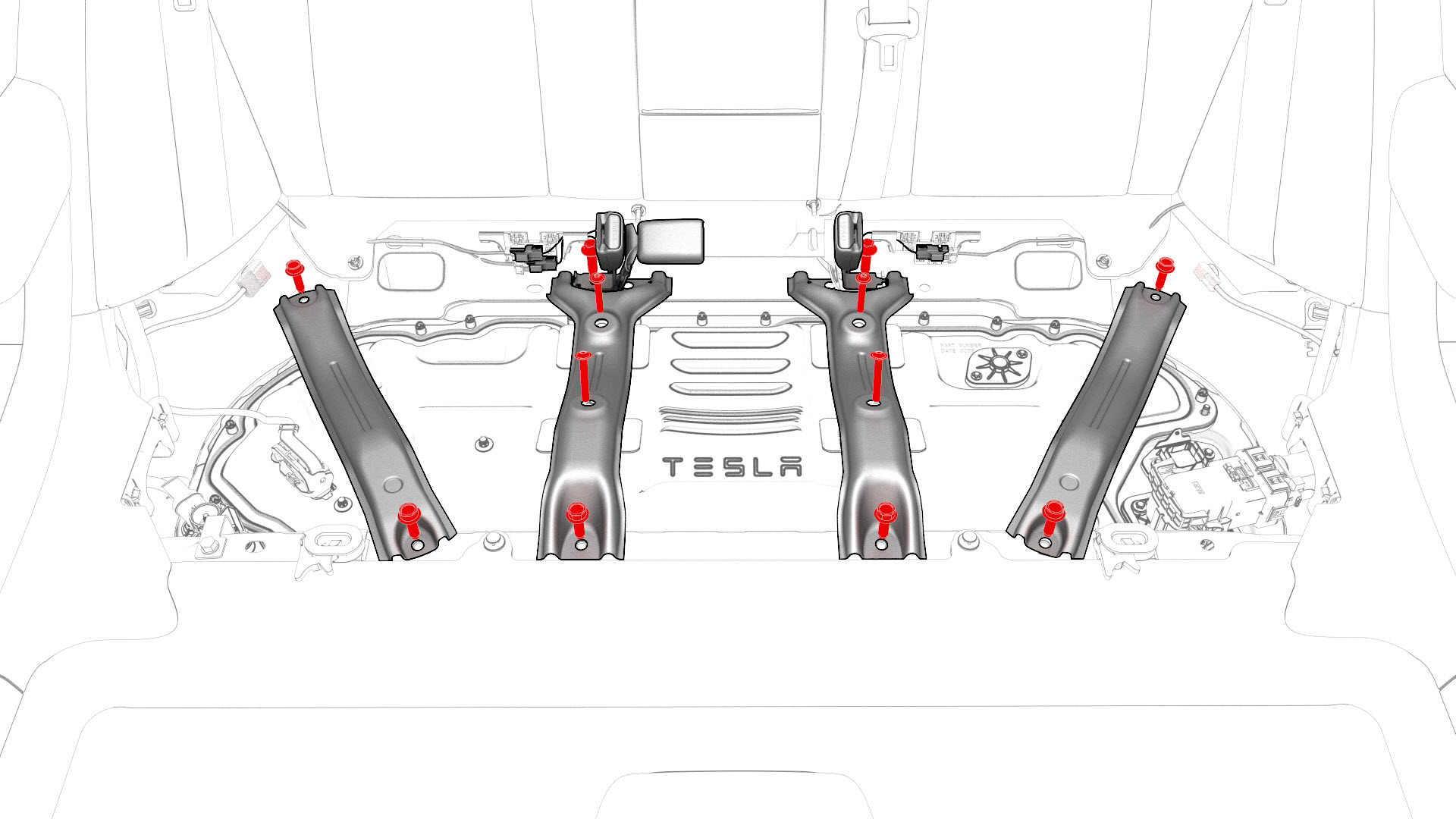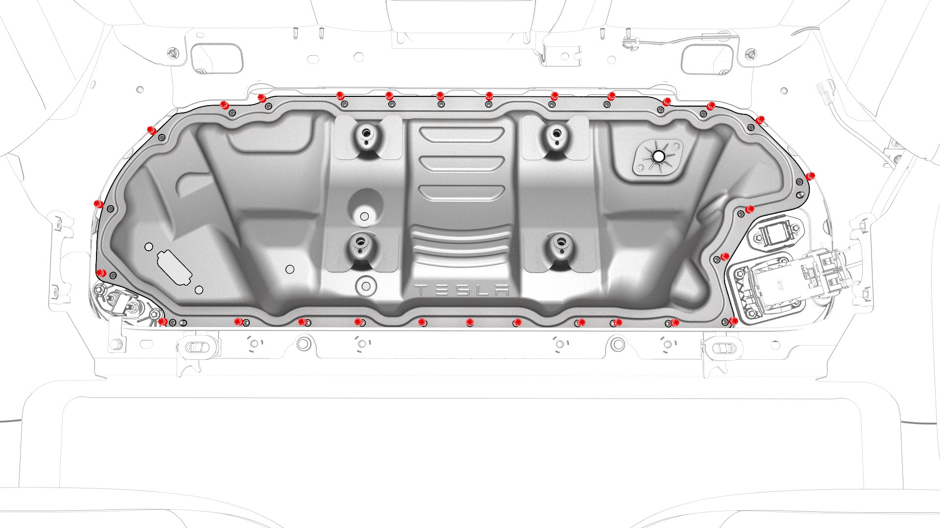 ![]() | 15 | Fully loosen and remove (if possible) the bolts that attach the penthouse cover to the HV battery. Note: Different penthouse cover revisions have 28, 18, or 16 bolts.