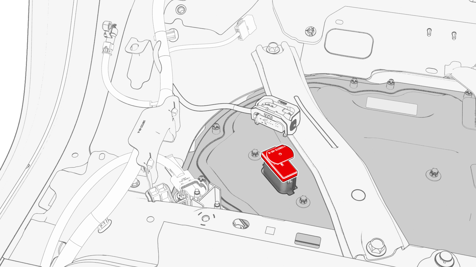 ![]() | 19 | Fasten the clip that attaches the charge port electrical harness to the vehicle. | |