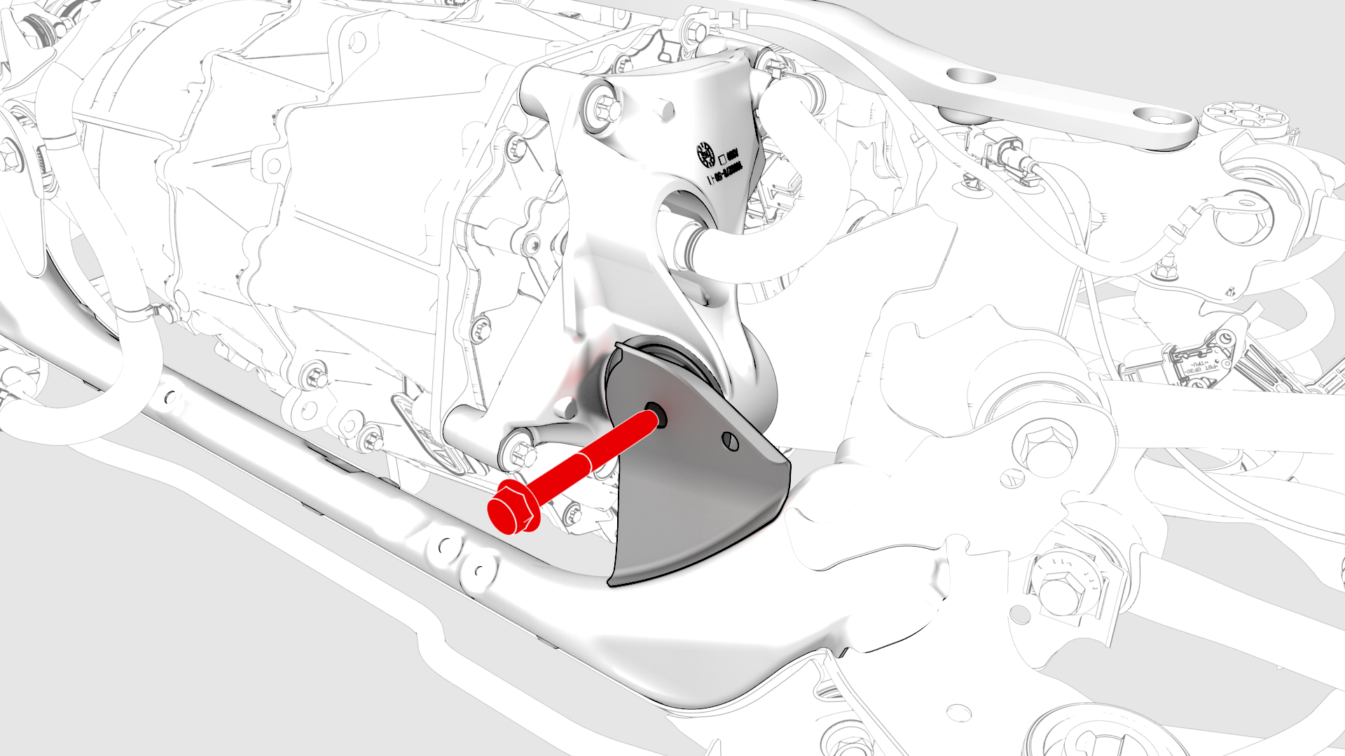 ![]() | 6 | Remove and discard the nut and bolt that attach the LH mount to the subframe. | |