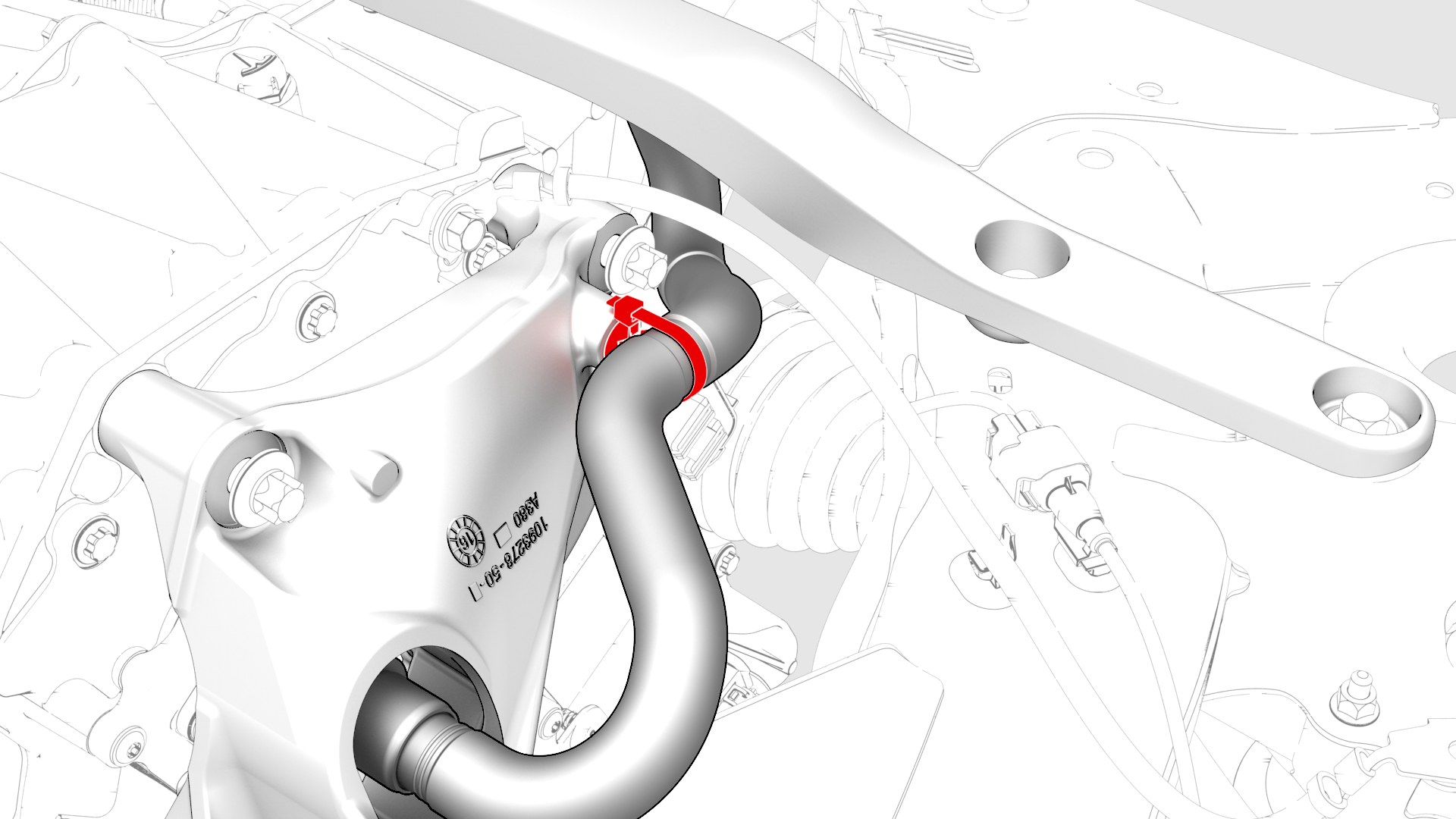 | 4 | Connect the coolant outlet hose to the inverter fitting, and then fasten the clip that attaches the hose to the fitting. Caution: Perform a push-pull test to verify that the hose is fully seated.