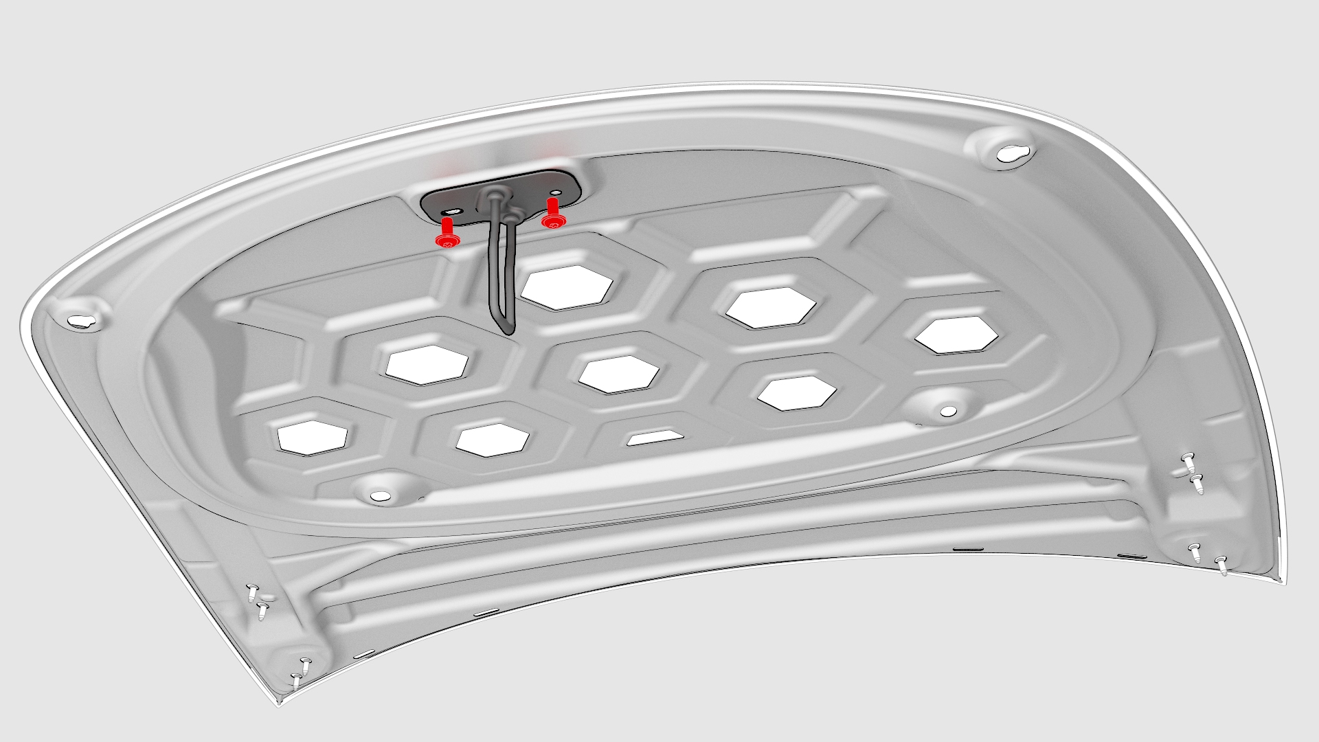 | 1 | Install the striker on to the hood, but do not fully torque the bolts. Note: Use the masking tape as a guide.