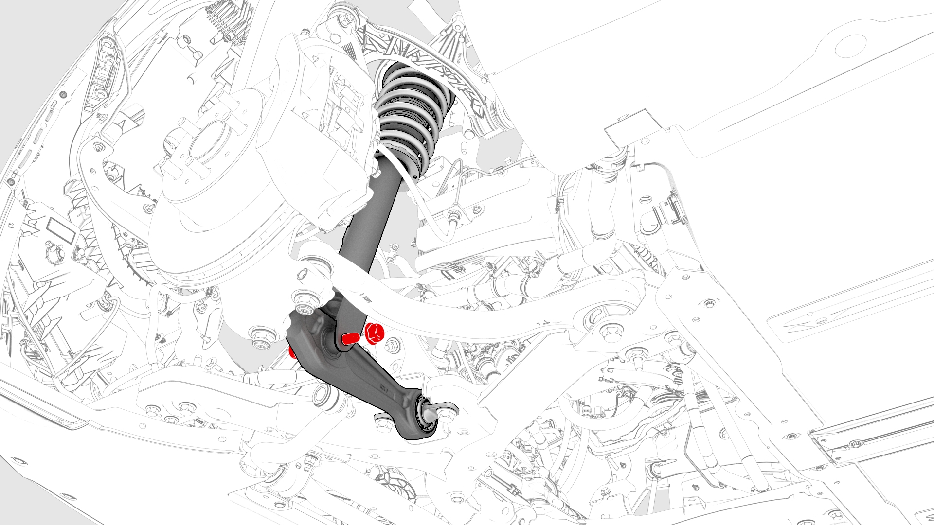 ![]() | 4 | Hand-tighten the bolt and nut that attach the LH strut to the LH front lower lateral link. | |