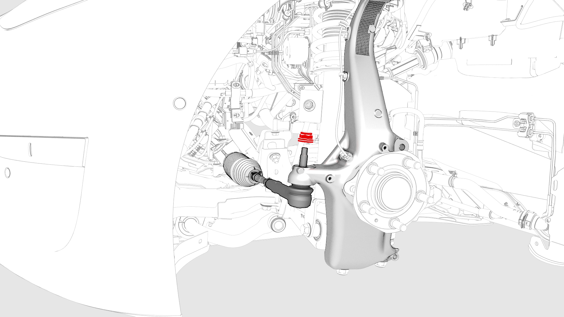 ![]() | 10 | Remove and discard the nyloc nut that attaches the LH tie rod end to the LH front knuckle, and then remove the tie rod end from the knuckle. | |