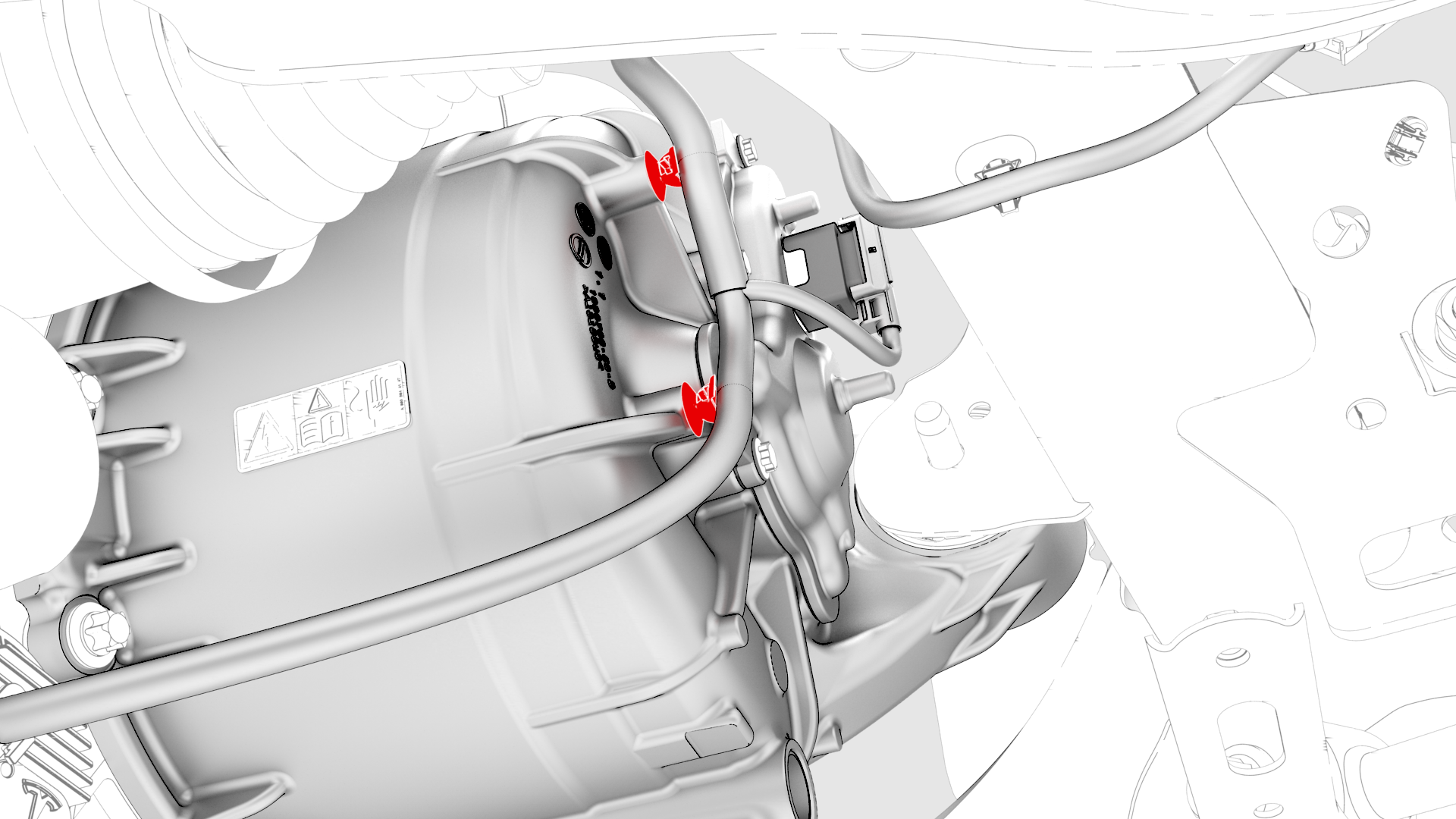 ![]() | 3 | Release the clips that attach the harness to the rear drive unit. | |