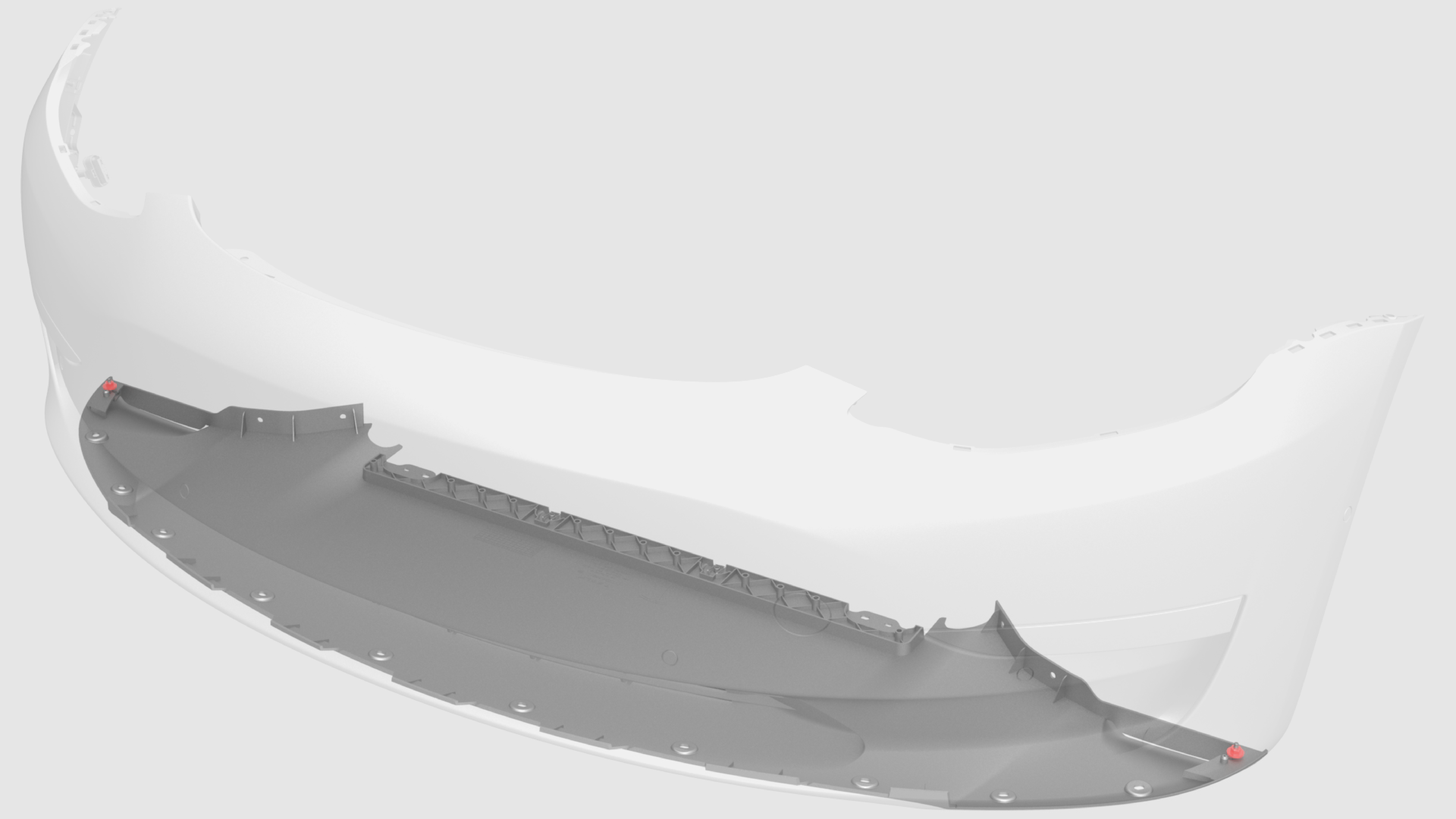 ![]() | 1 | Install the valance to the front fascia, and install the push clips (x10) that attach the valance to the fascia. Note: Fasten the clips at the far left and far right first and work inward.