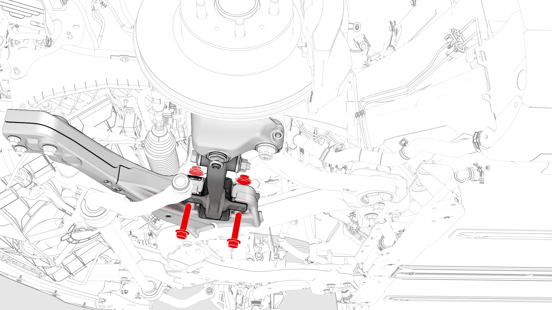![]() | 2 | With an assistant, hand-tighten the bolts that attach the LH front lower lateral link to the front subframe. Note: Use a punch tool to align the fasteners.