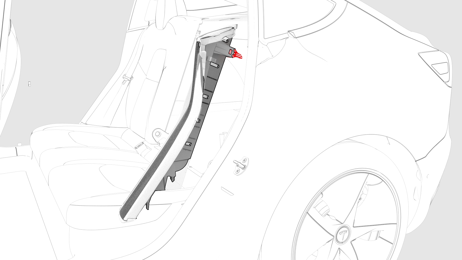 | 1 | Install new bolster plastic bracket to the 2nd row seat side bolster. Note: The bracket is one time use only.