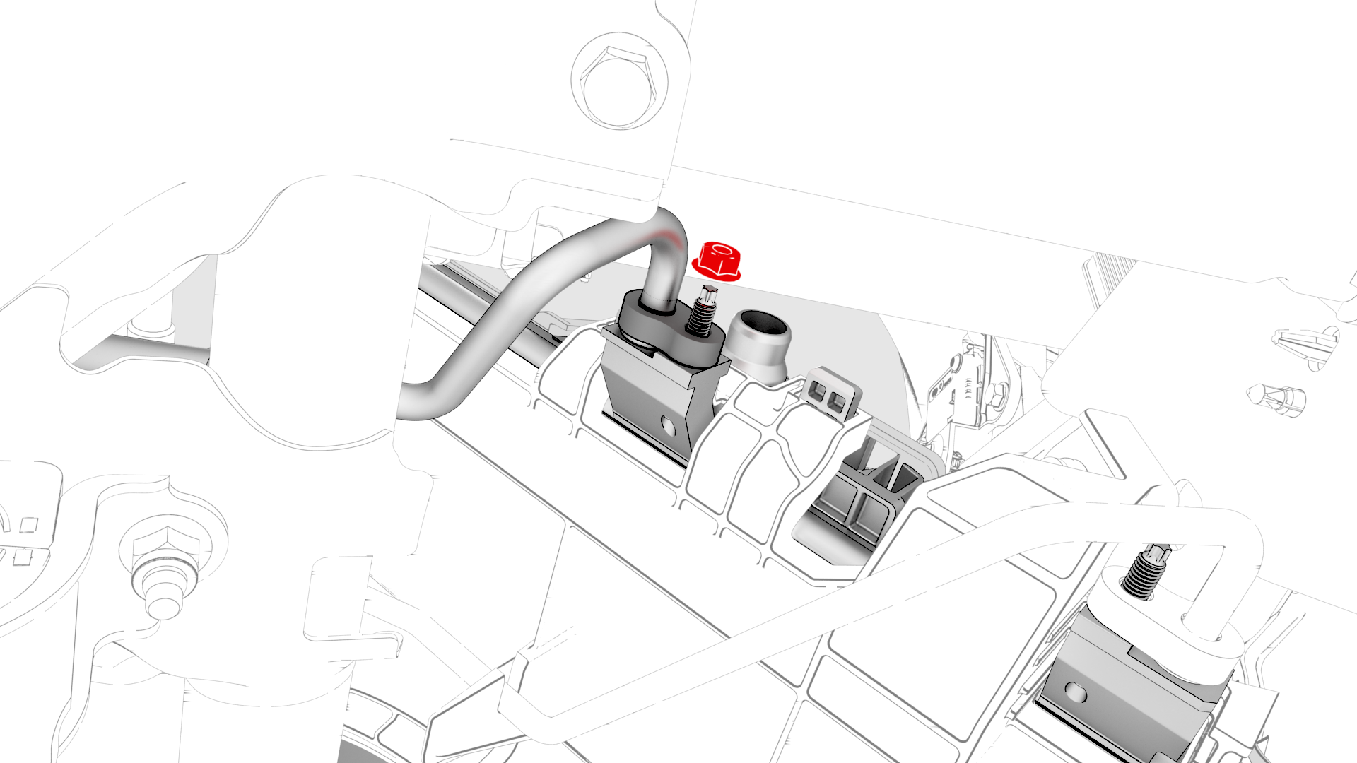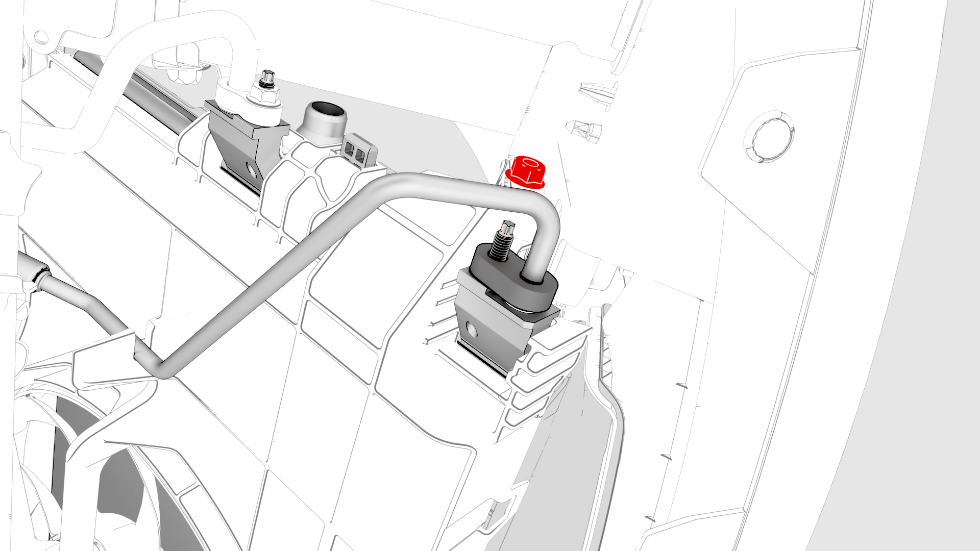 ![]() | 4 | Install the nut that attaches the discharge line to the cooling fan module.![]() Torque 22 Nm | |