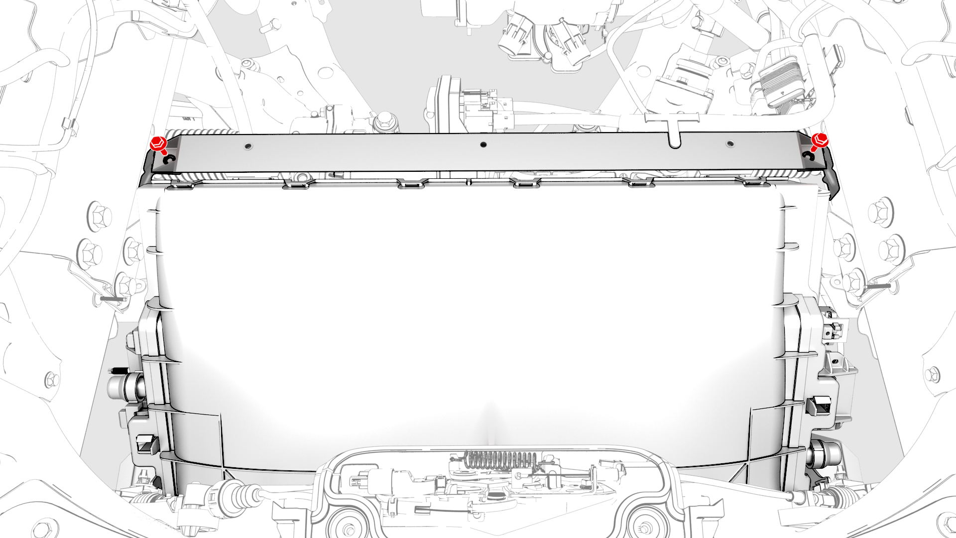 ![]() | 5 | Remove the bolts that attach the lower LH and RH of the cooling fan module to the ankle catcher. Note: Lift up on the cooling fan module to ease the removal of the bolts.
