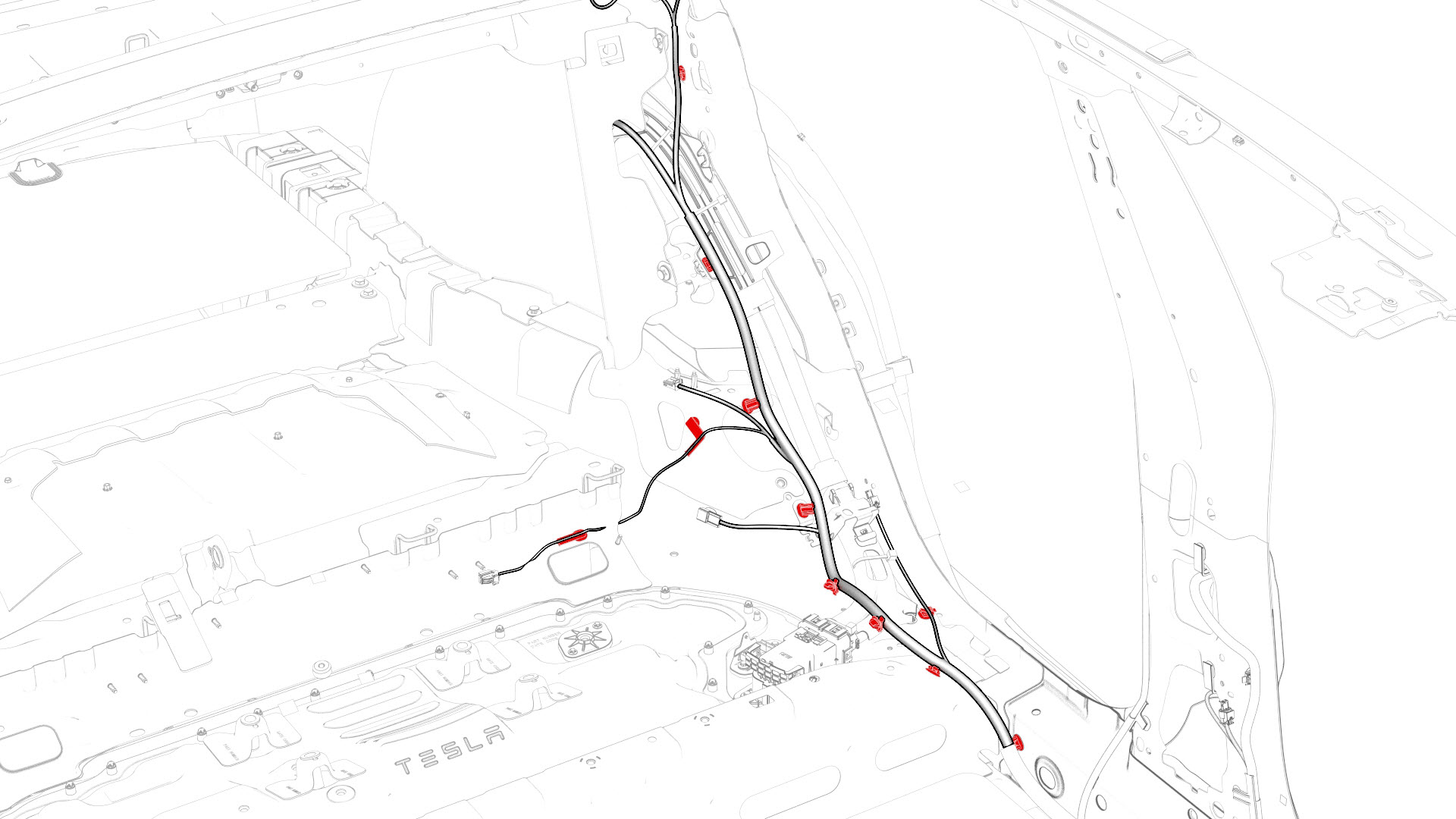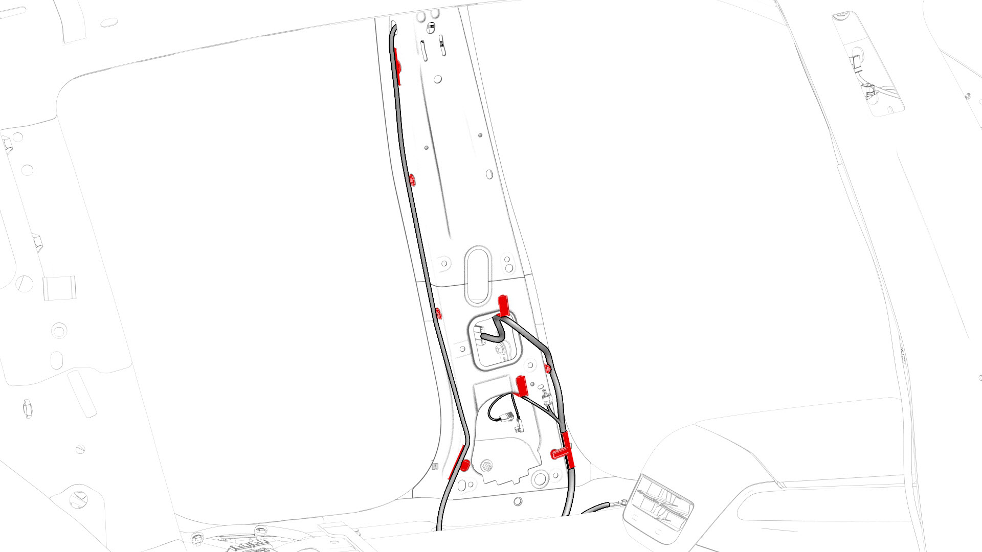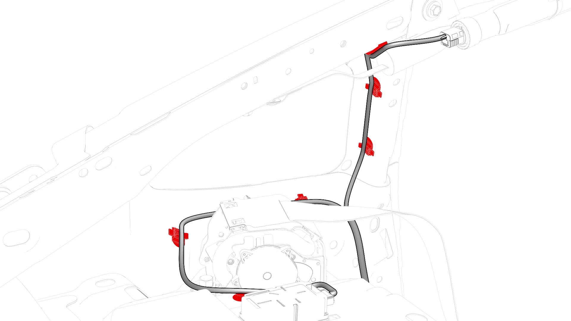 ![]() | 9 | Connect the electrical harness to the connectors in the lower C-pillar area. | |