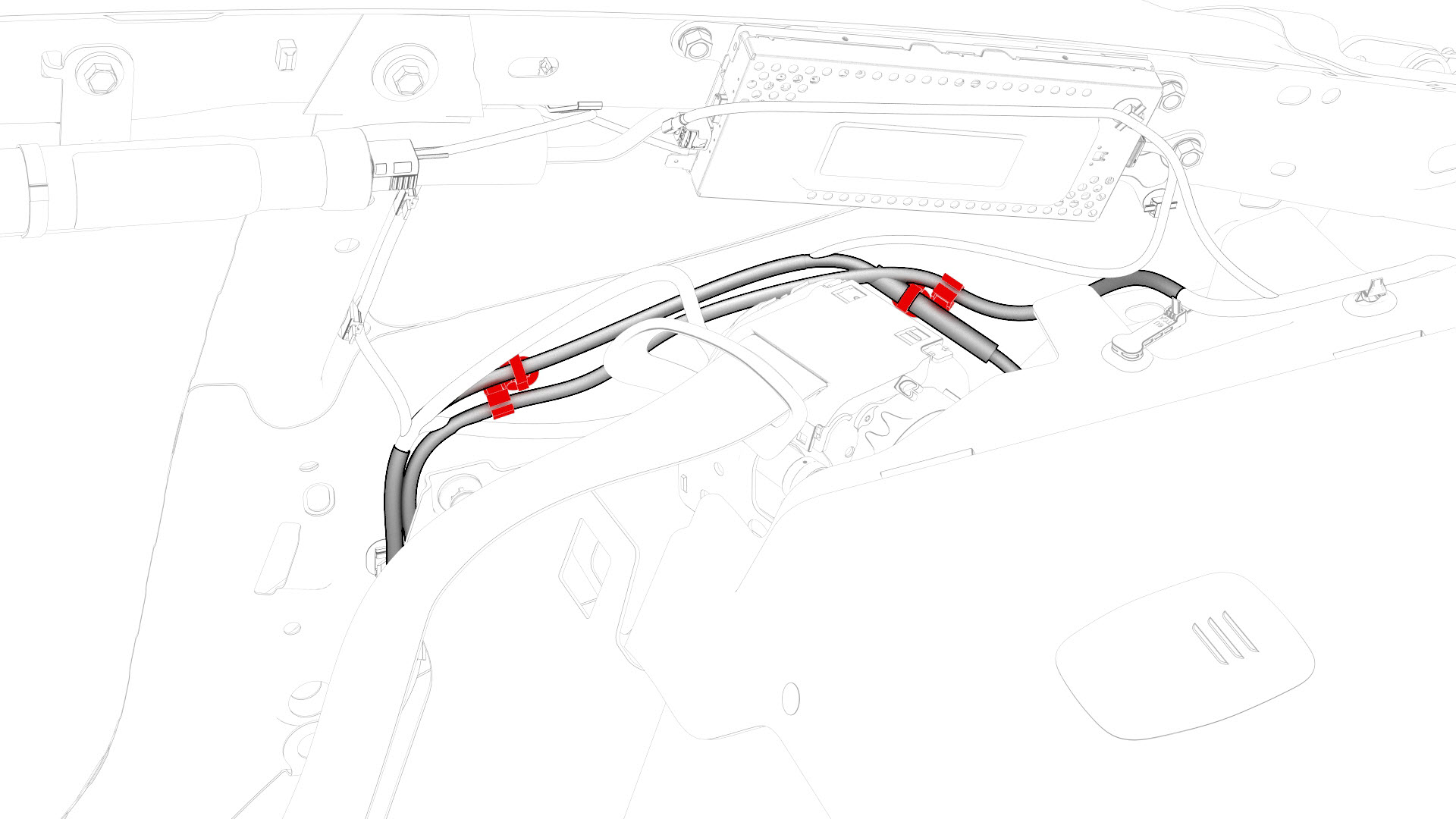 ![]() | 22 | Fasten the clips that attach the electrical harness to the body under the IP carrier area. | |