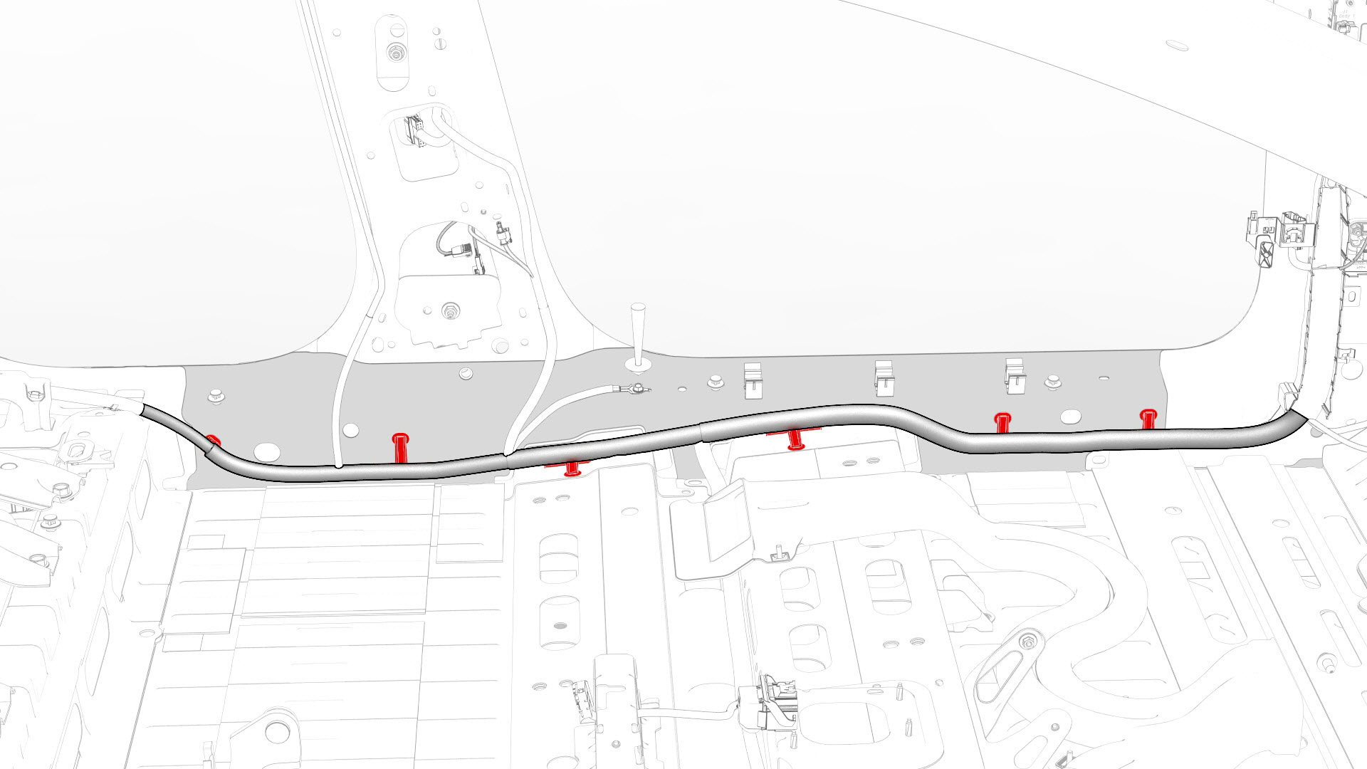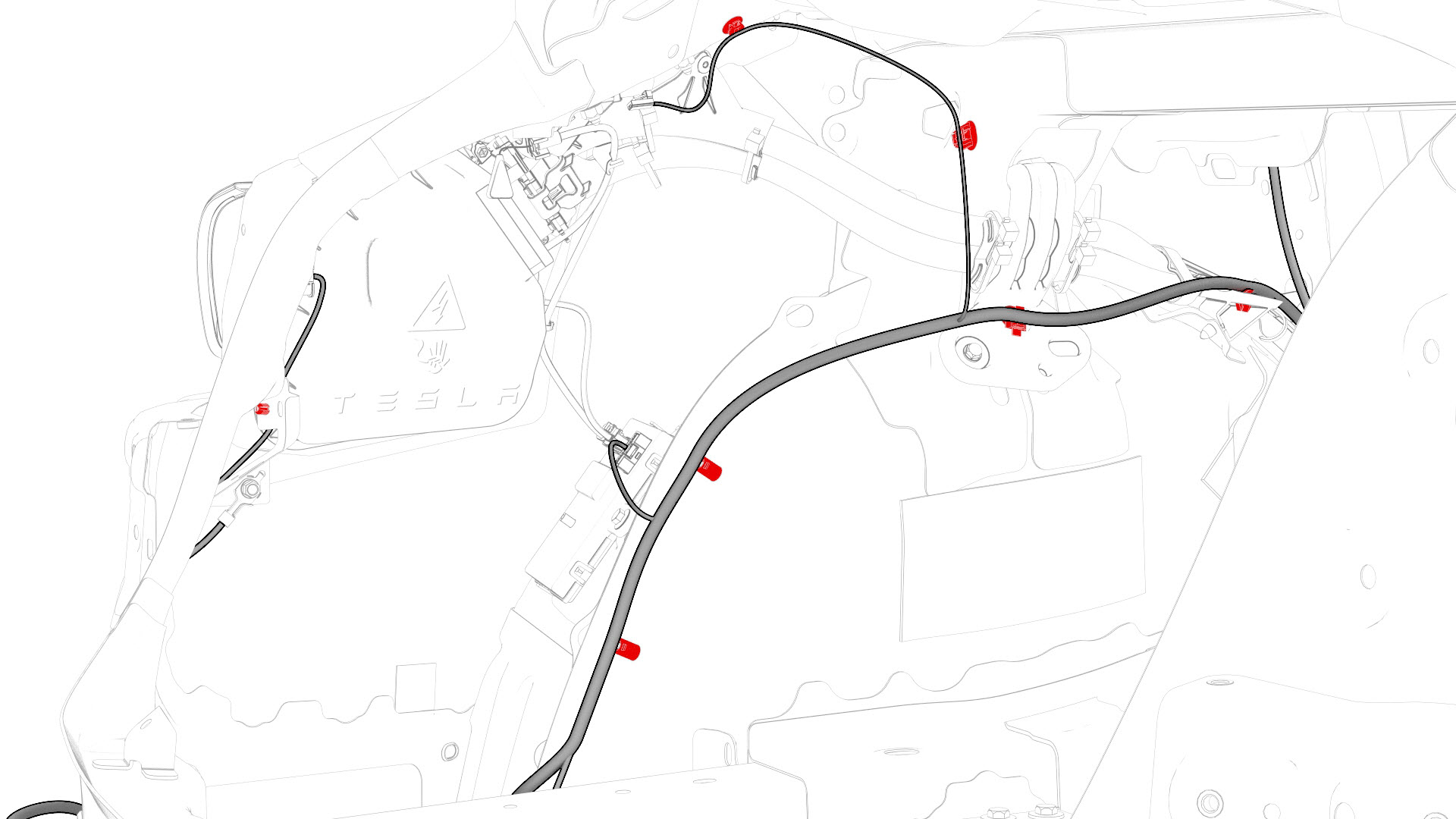 ![]() | 12 | Release the clips that attach the electrical harness to the body, and then push the rear subframe portion of the electrical harness through the LH side trunk bulkhead. Note: The LH body harness passes through the trunk near the rear section of the rear LH wheel liner area.