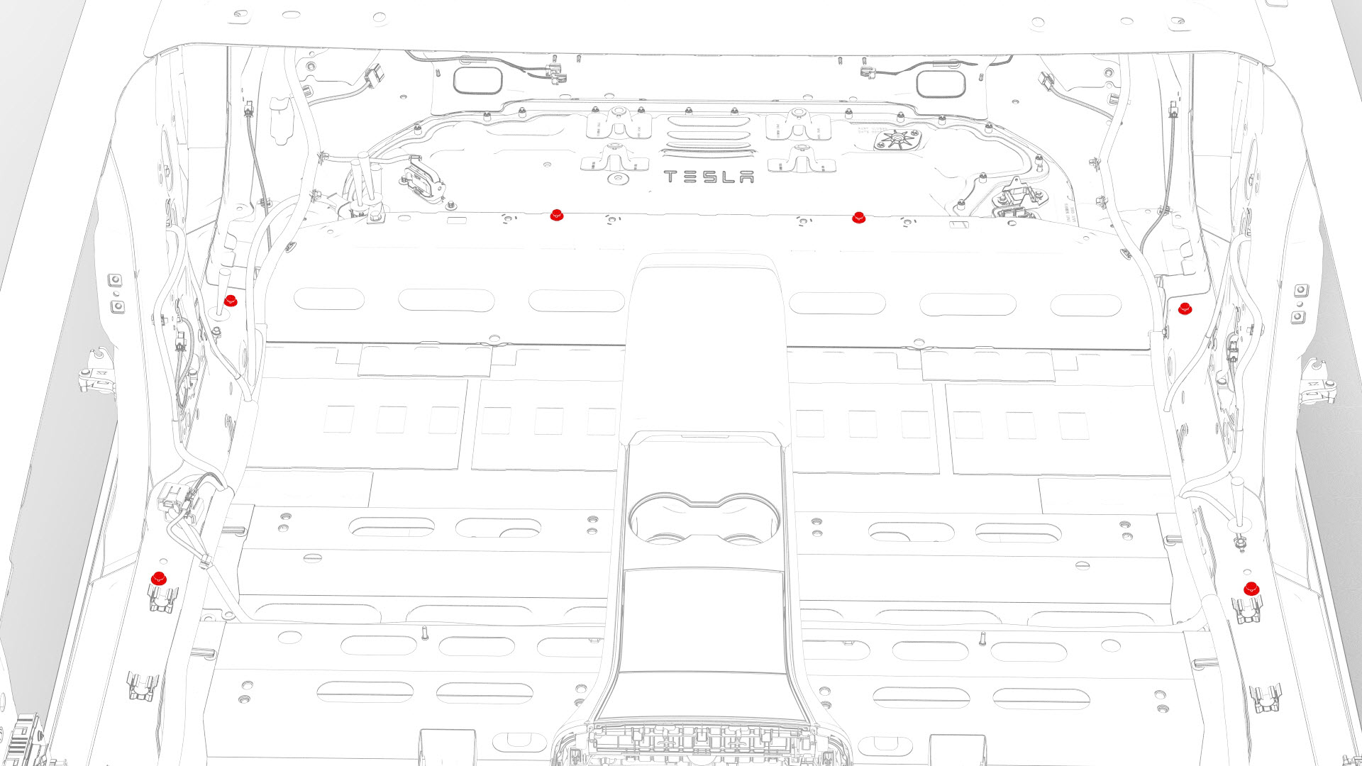 ![]() | 67 | Fasten the trunk carpet clips to the body studs under the 2nd row seat cushion. | |