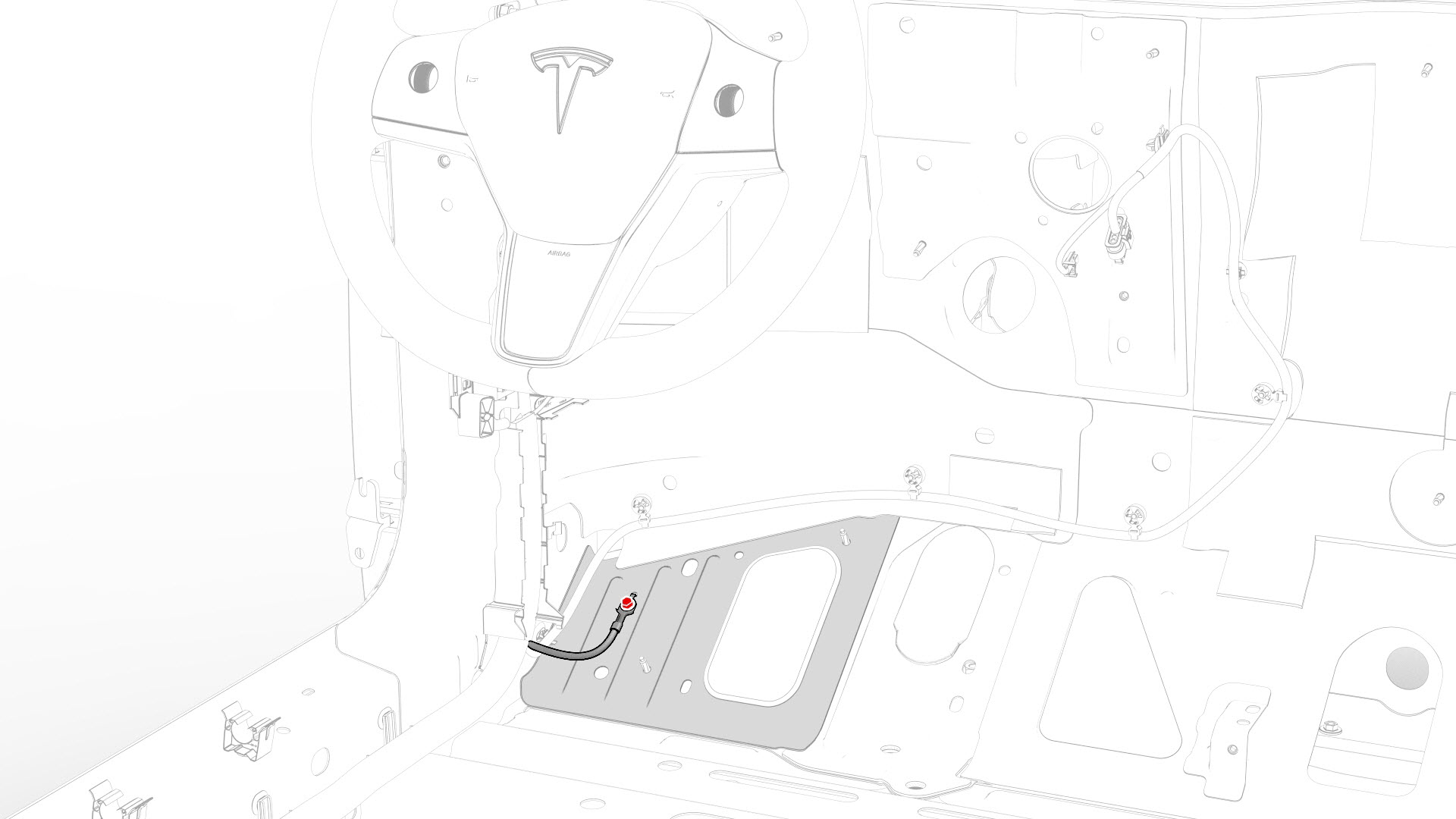 ![]() | 51 | Remove and discard the bolt that attaches the electrical harness ground strap at the driver footwell area. | |