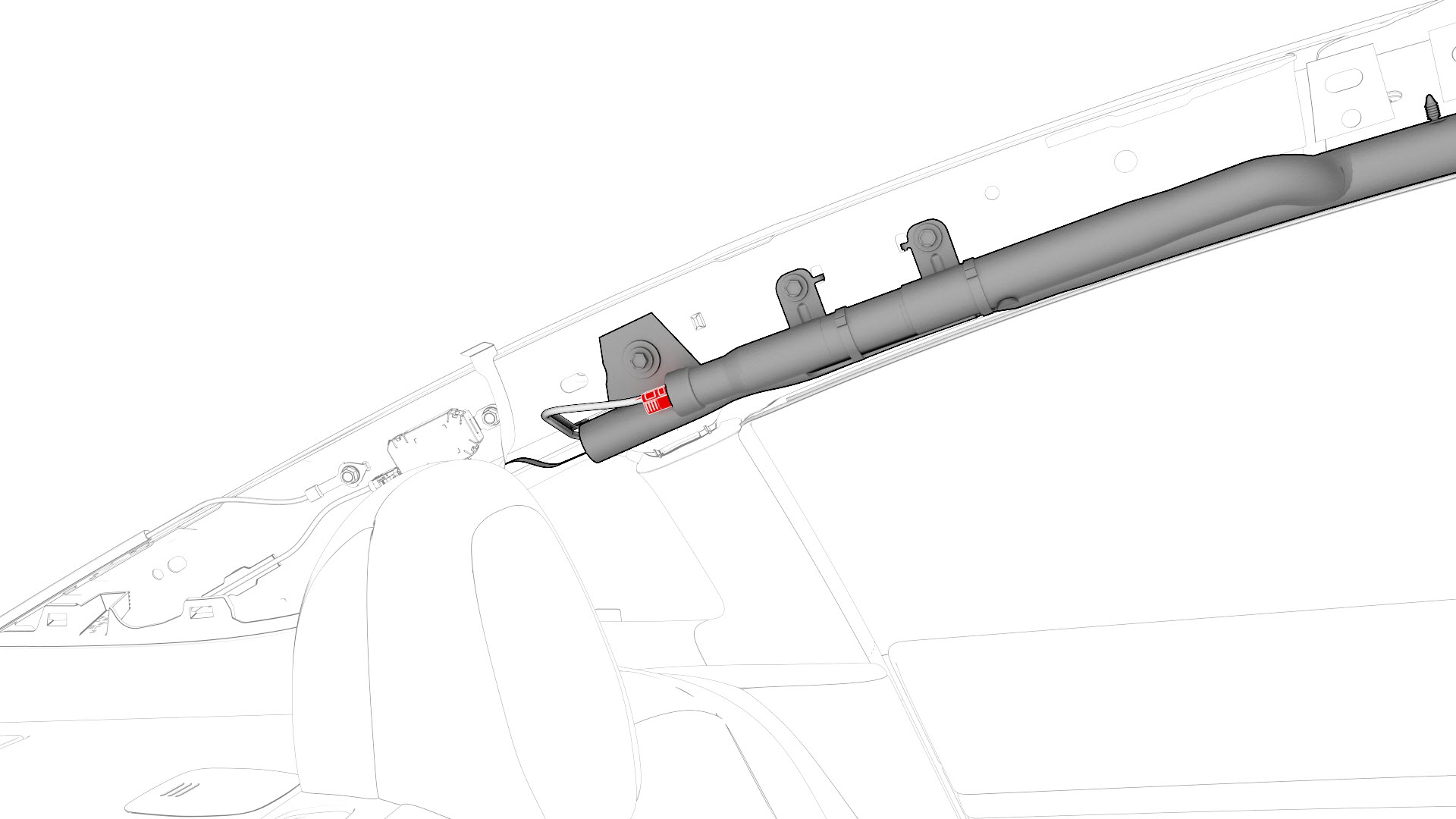 ![]() | 3 | Disconnect the electrical harness from the LH curtain airbag connector. | |