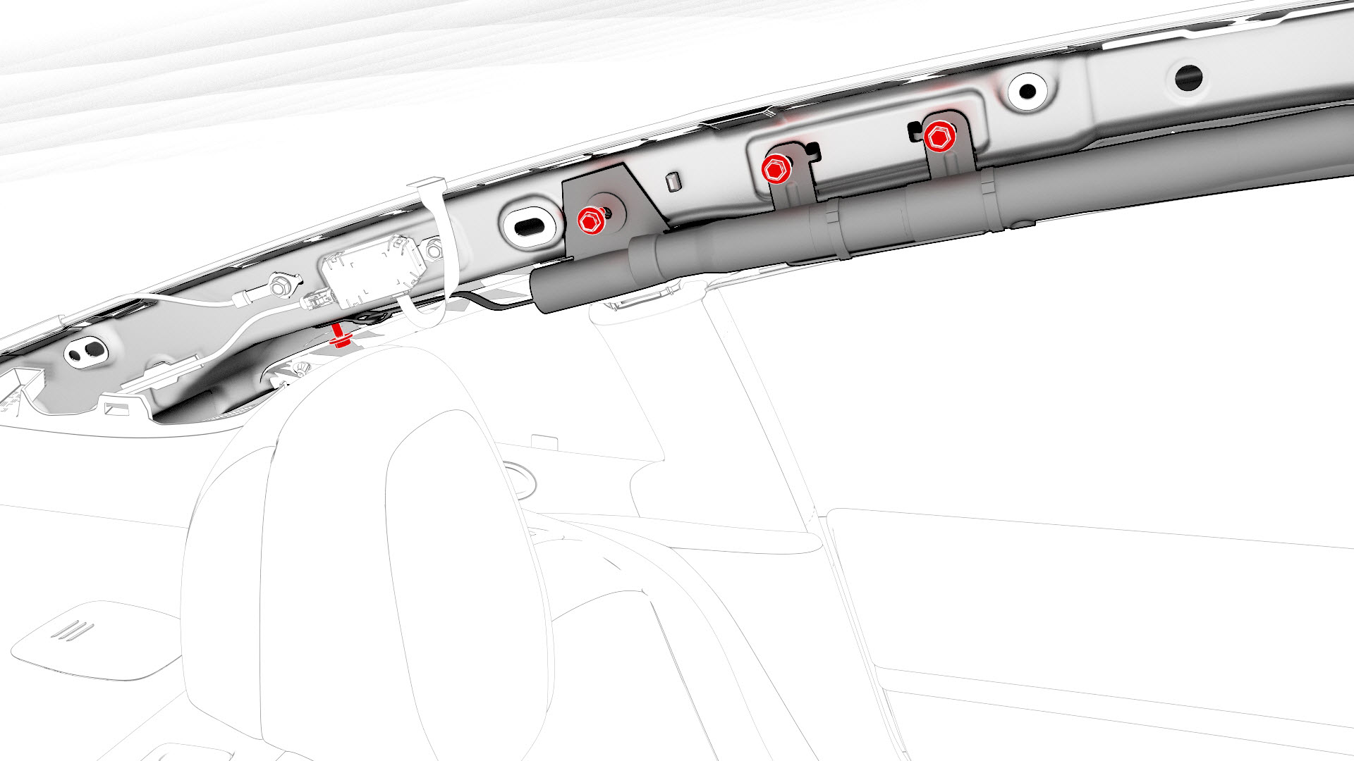 ![]() | 4 | Remove the bolts that attach the front and center portions of the LH curtain airbag to the body. | |