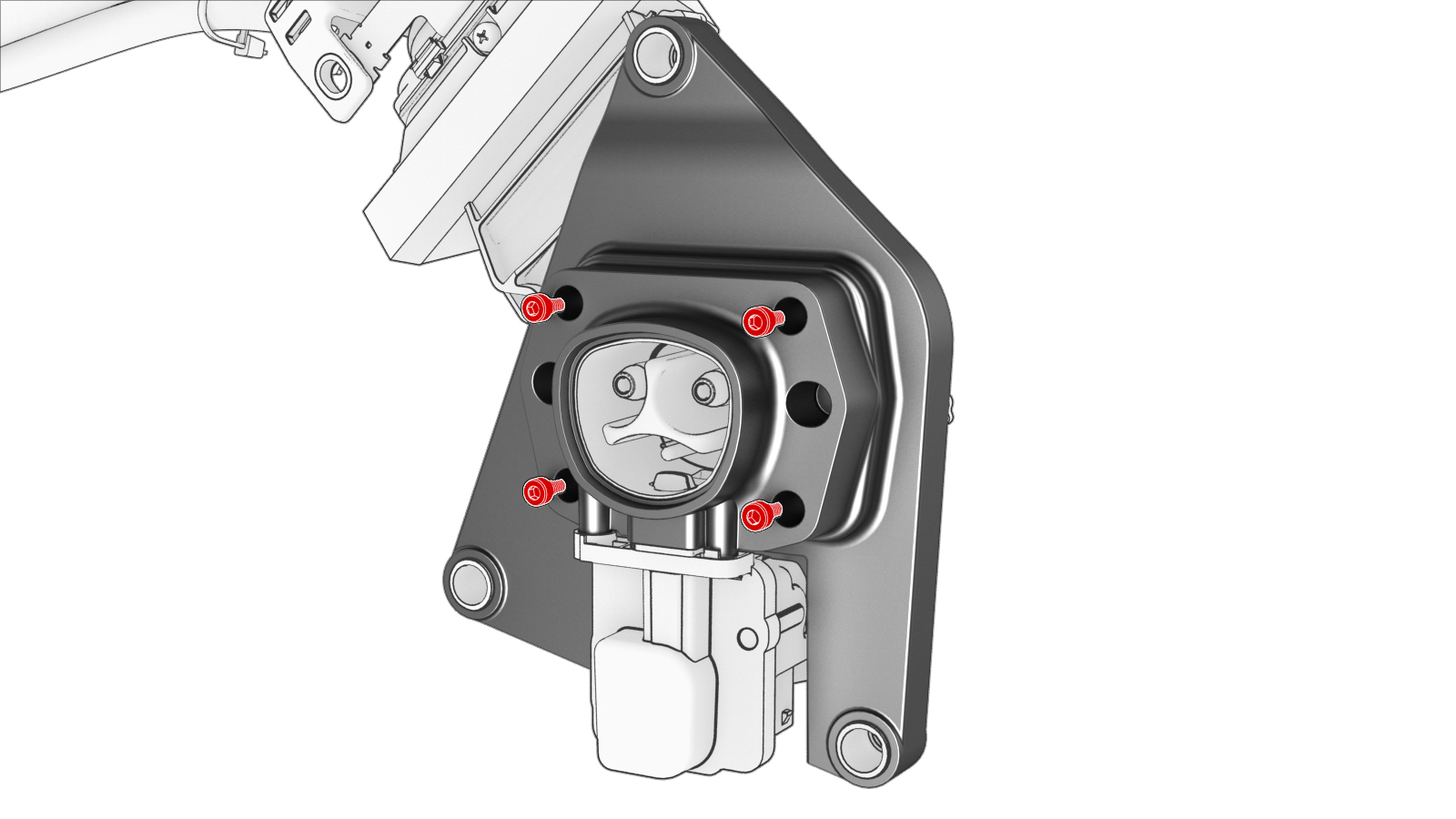 ![]() | 1 | Position the new carrier assembly on the charge port assembly, and then install the bolts that attach the carrier assembly to the charge port assembly.![]() Torque 2.3 Nm | |