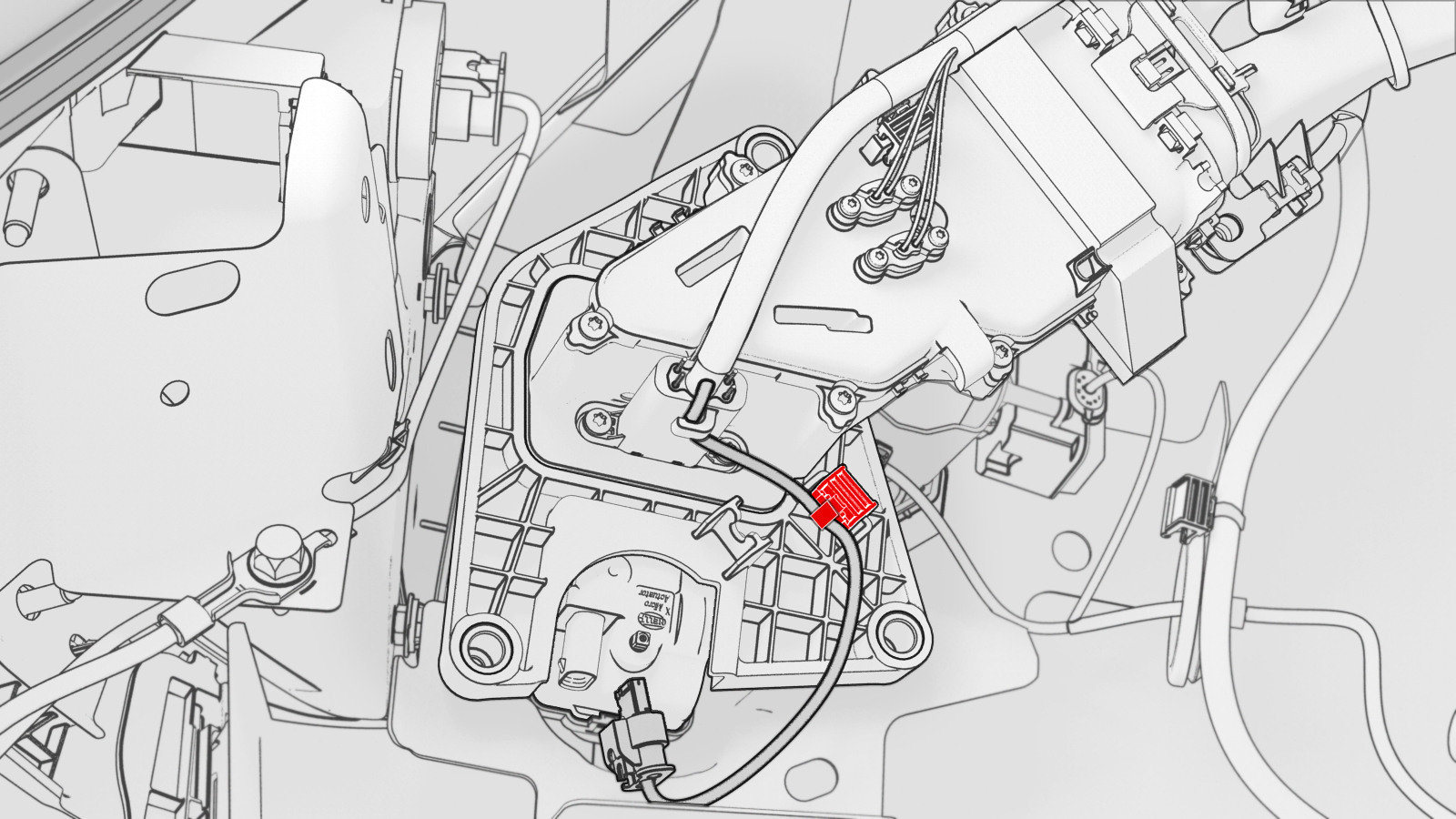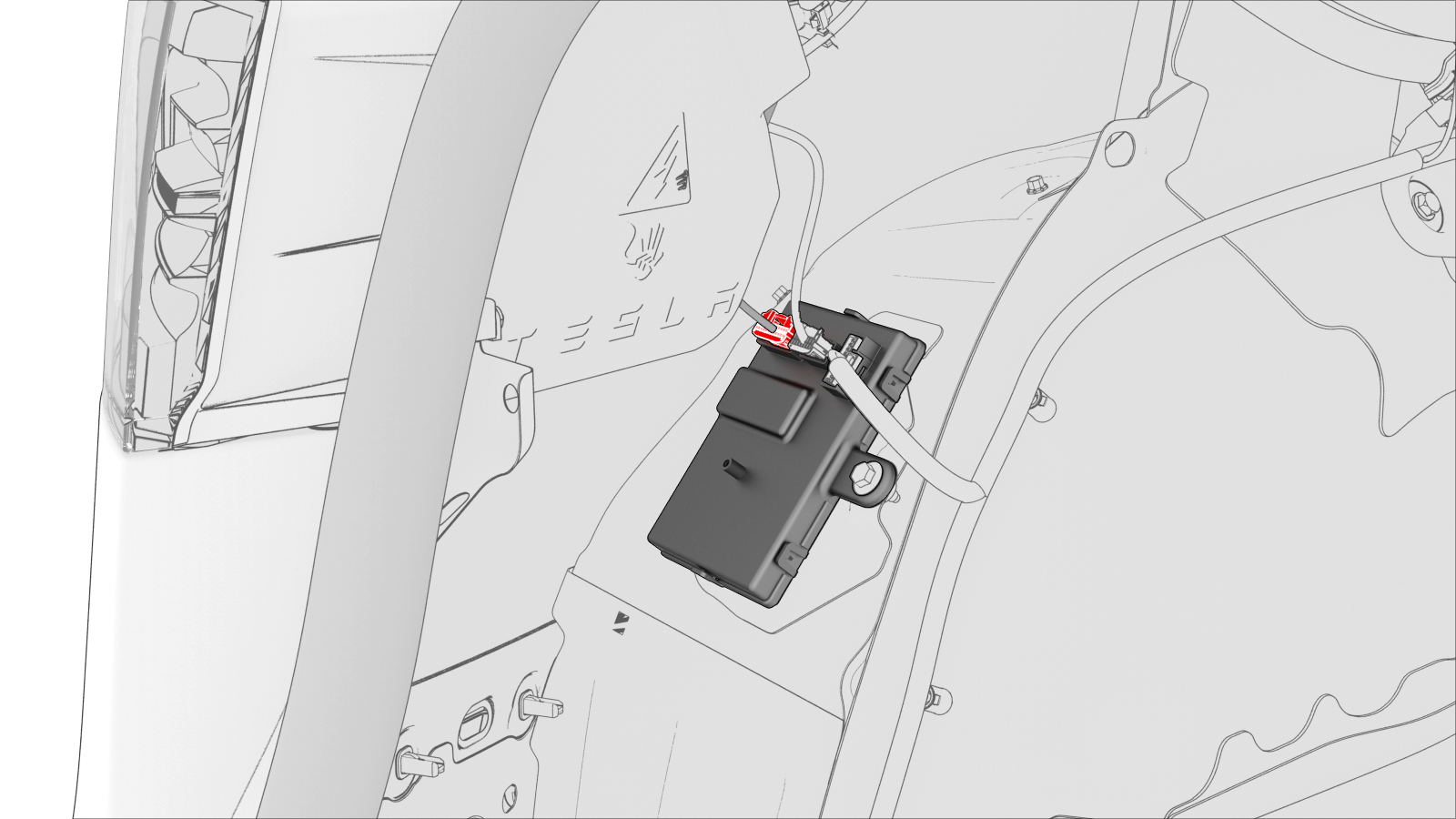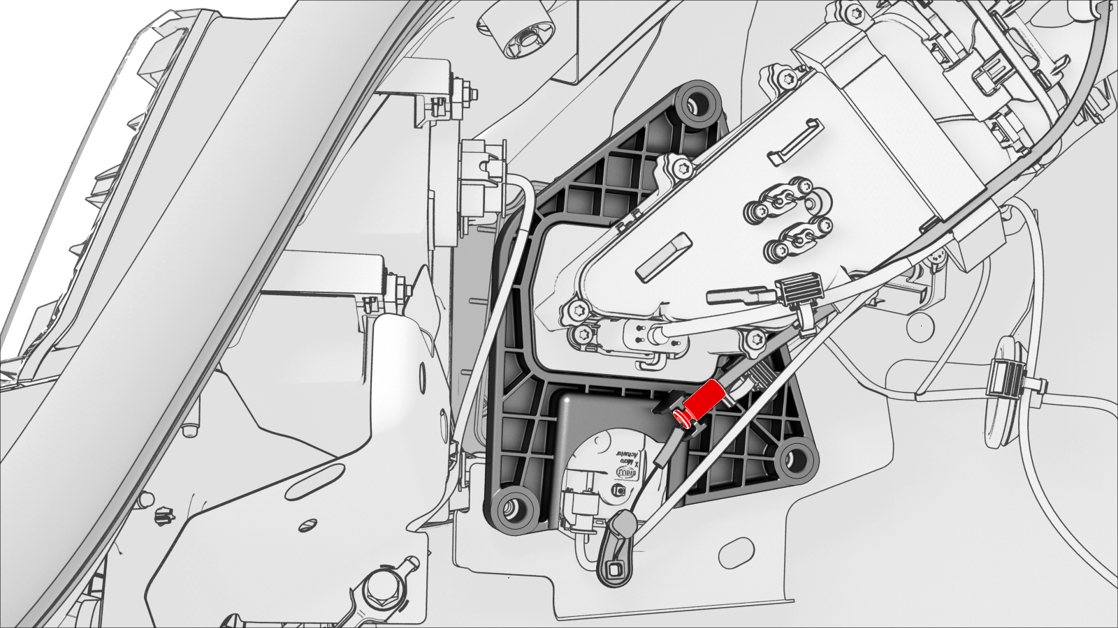 ![]() | 13 | Release the clip that attaches the actuator harness to the charge port assembly, and then carefully cut the clip off of the harness. Note: Note the location of the clip before cutting it off.