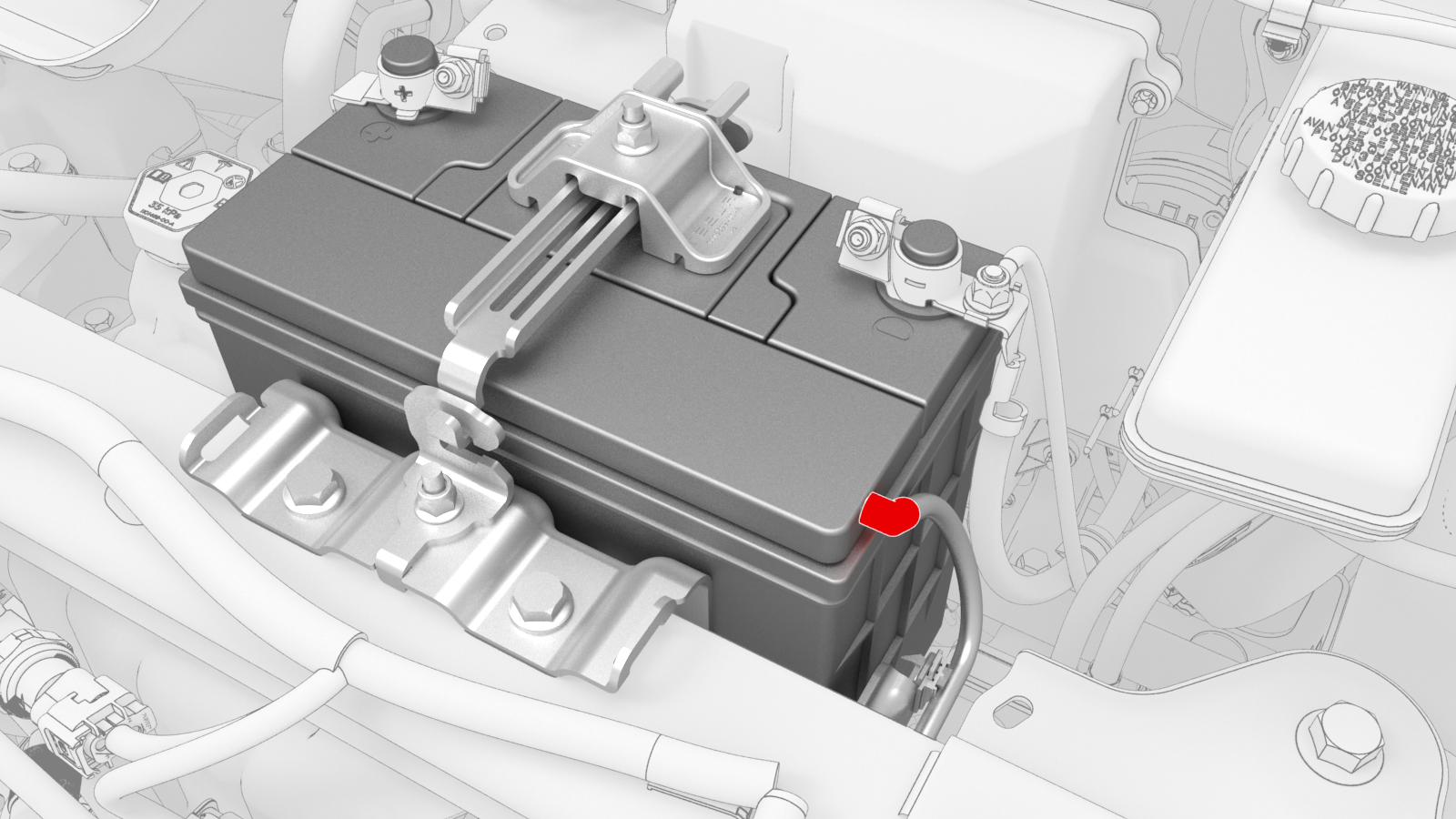 ![]() | 5 | Remove the 12V battery vent hose from the LH side of the 12V battery. | |