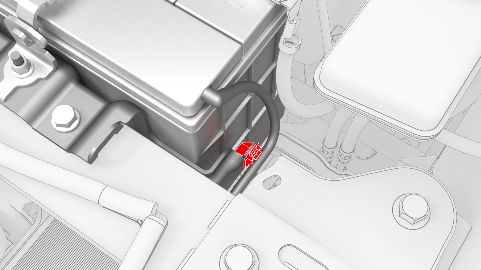 ![]() | 6 | Release the 12V battery vent hose clip from the 12V battery bracket. | |