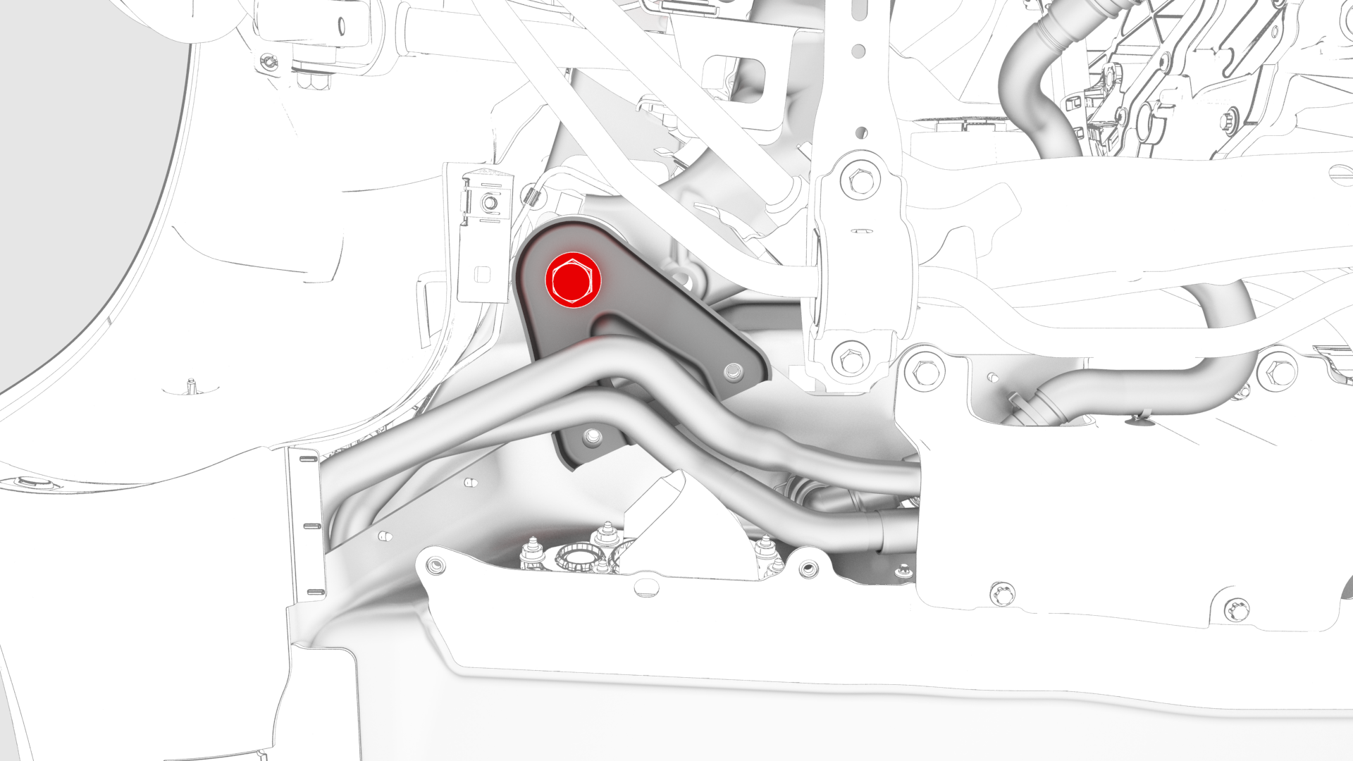 ![]() | 9 | Loosen the large bolt that attaches the LH shear plate and subframe to the body, and then rotate the shear plate aside. | |