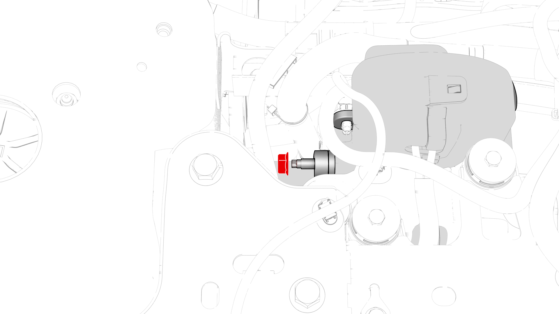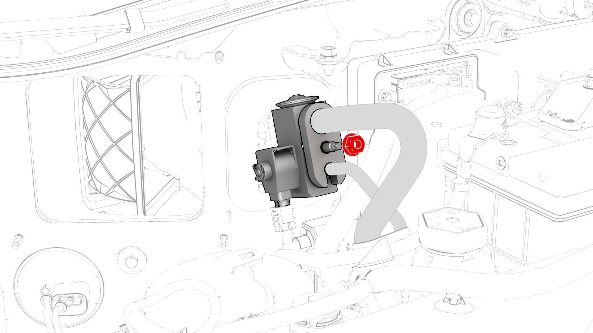 ![]() | 12 | Remove the bolt that attaches the liquid line to the EXV chiller assembly, and remove the line from the EXV.![]() Torque 22 Nm | |