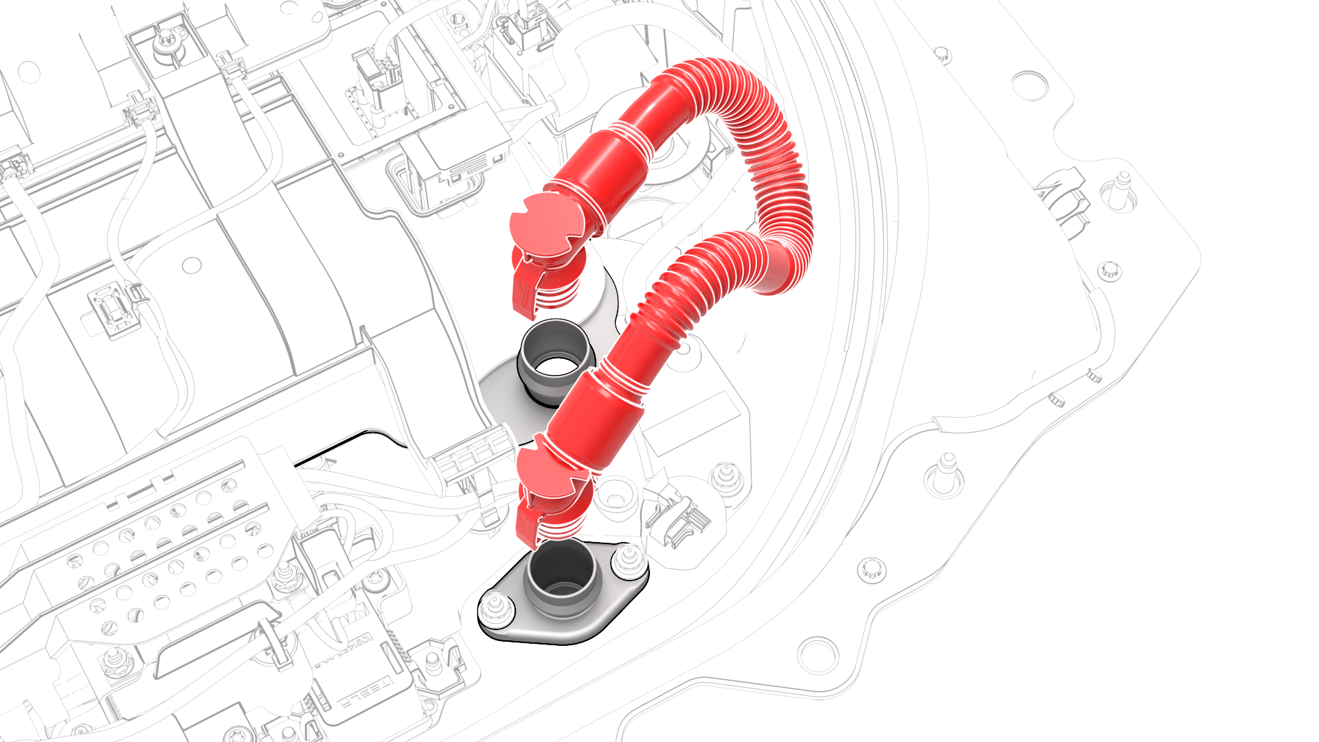 ![]() | 5 | Install the coolant input tube into the power conversion system and the battery flange. | |