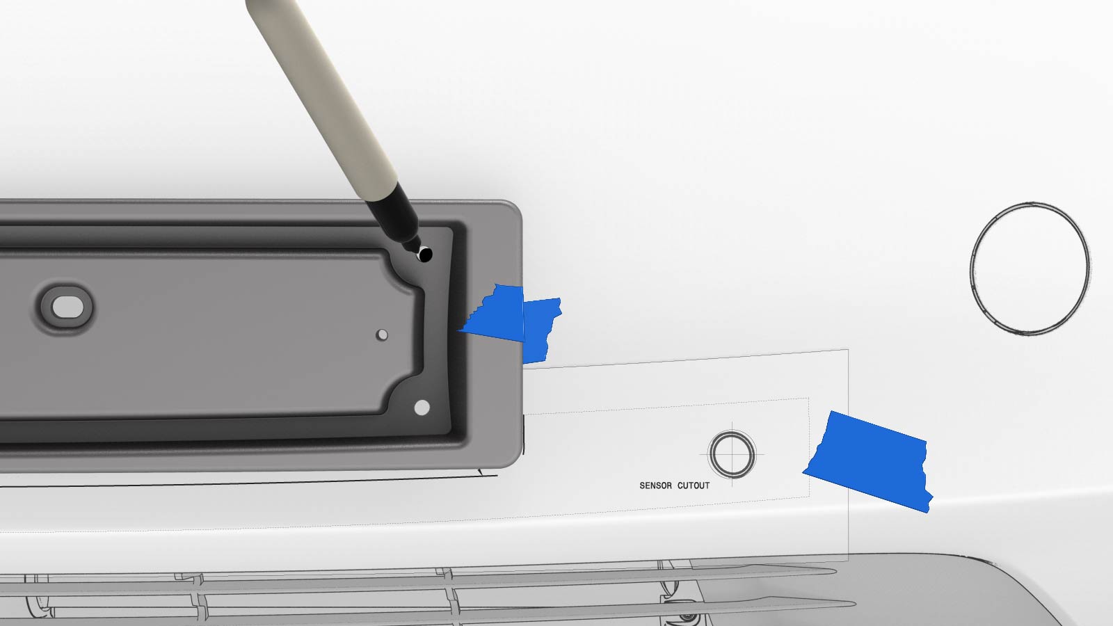 | 8 | Use a 7/64 in (3 mm) drill bit to drill 4 holes through the front fascia. Caution: Only drill though the top surface of the front fascia. Drilling too far can result in damage to the vehicle.