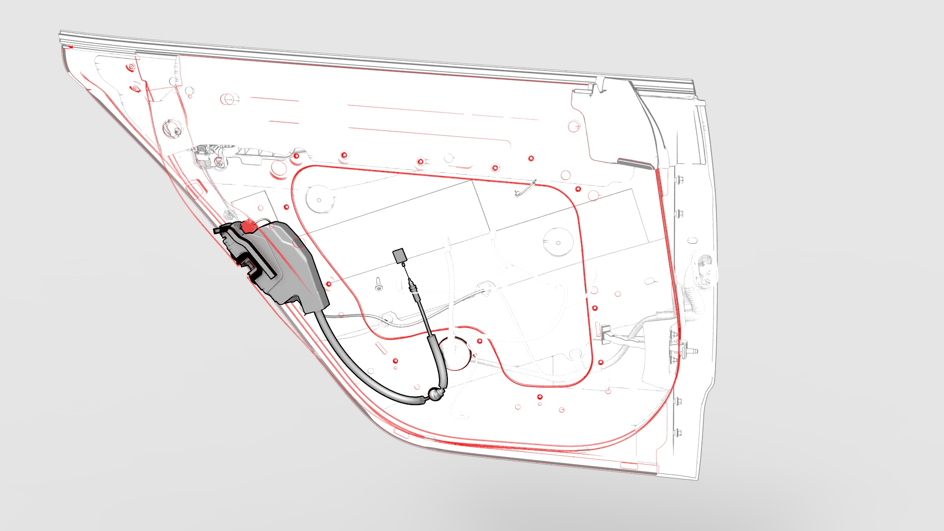 ![]() | 1 | Install the LH rear door latch into the LH rear door, while at the same time, move the latch cable out through the door, and then secure the latch cable grommet in the door. | |