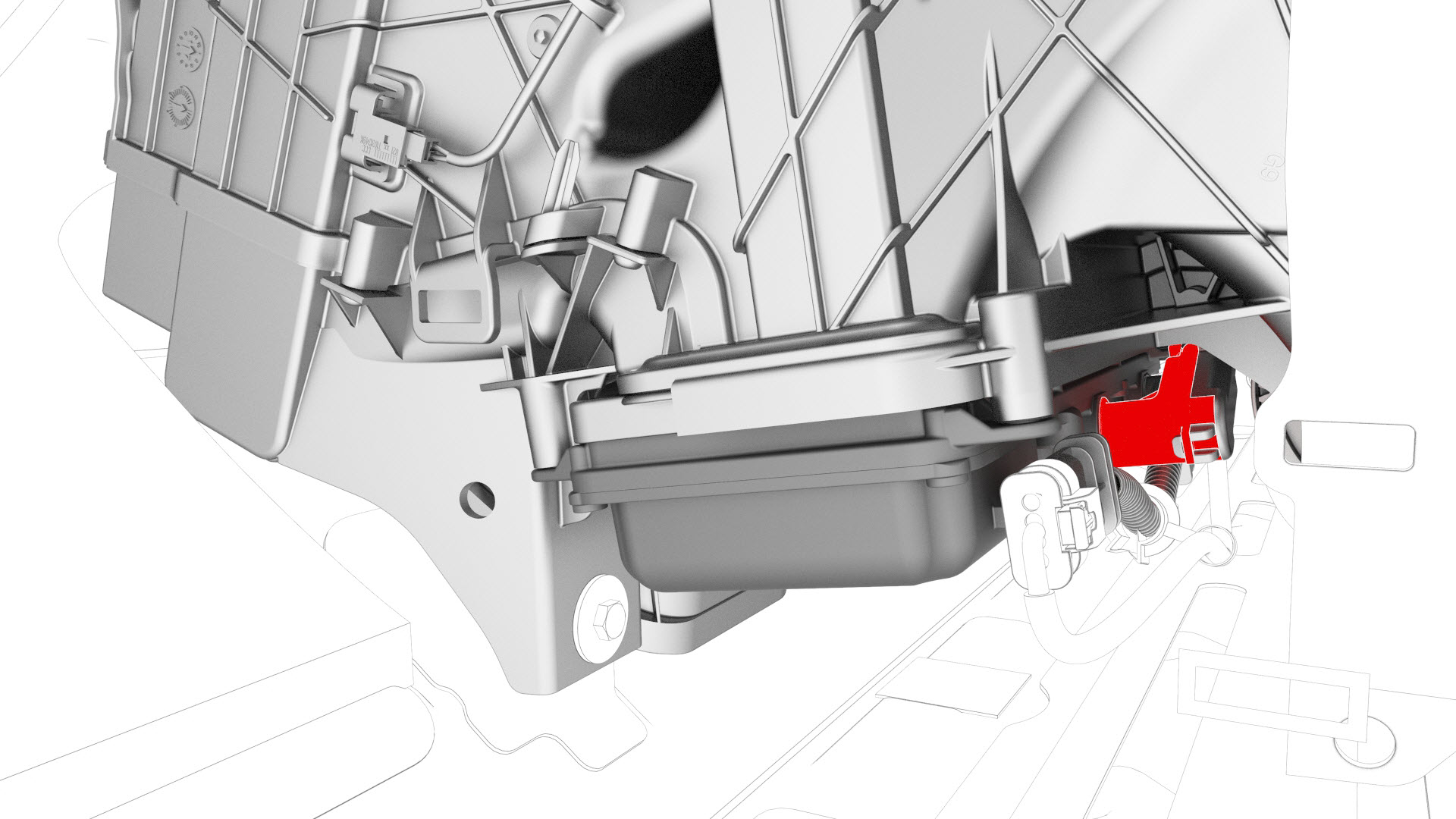 ![]() | 33 | Use a razor blade to carefully cut the inner edge of the airbox side cover, and then remove and discard the airbox side cover. Caution: Use caution when cutting the airbox. Avoid contact with the PTC heater.