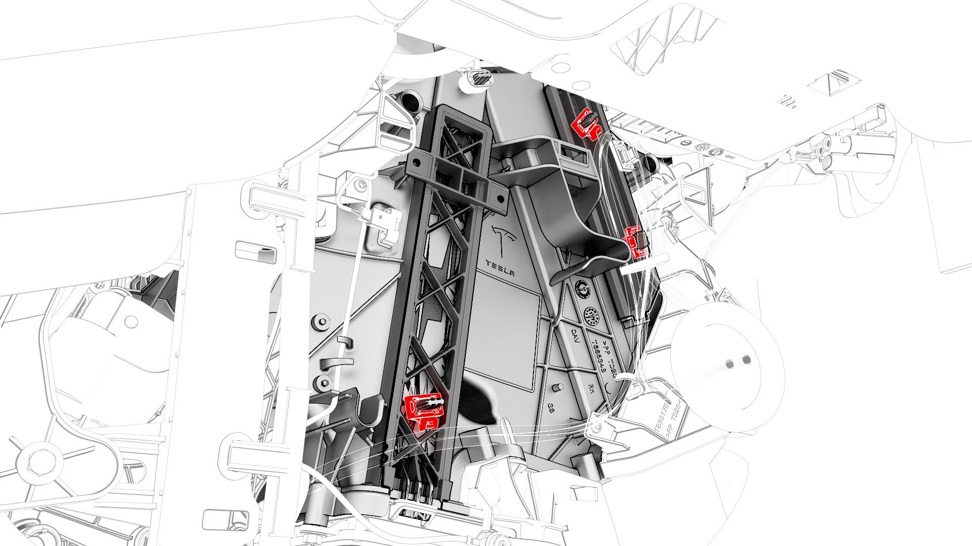 ![]() | 20 | Connect the charge port electrical harness to the DC Input assembly. Note: Use 1 hand to support the electrical connector while the other hand latches the locking tab.