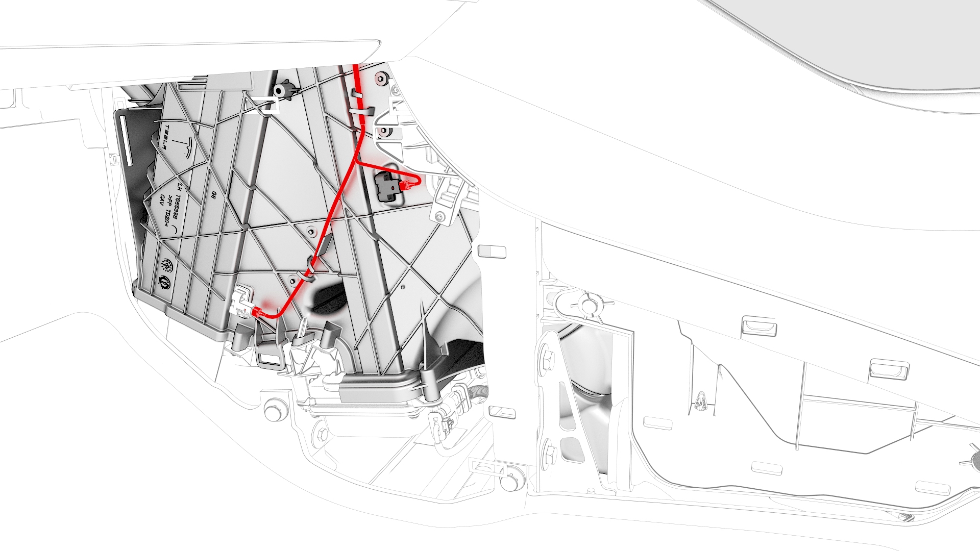 ![]() | 4 | Release the tabs that attach the LH temperature sensor inside the HVAC assembly, and then remove the LH temperature sensor from the HVAC assembly. Note: Use a plastic trim tool to release the tabs, and then pull the LH temperature sensor straight out to remove it from the HVAC assembly.