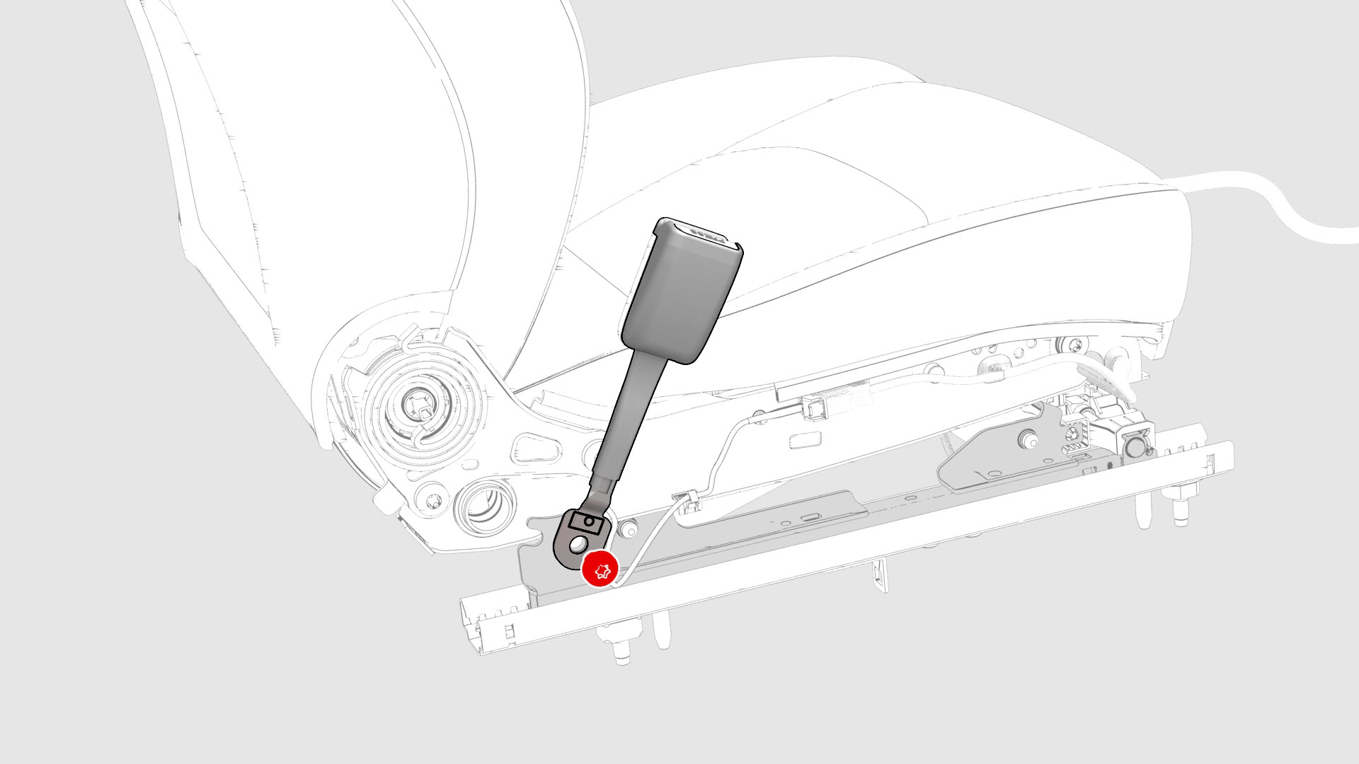 ![]() | 11 | Remove and discard the patchbolt that attaches the buckle to the seat track, and then remove the buckle.![]() Torque 40 Nm ![]() |