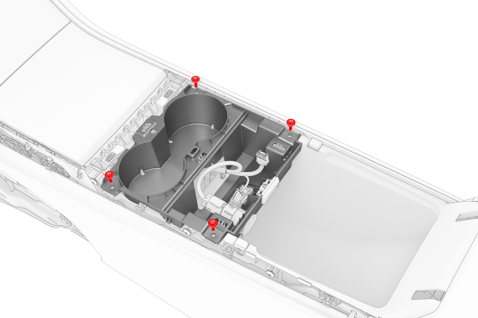 ![]() | 14 | Remove the screws that attach the cup holder lower assembly to the center console, and remove the cup holder from the vehicle.![]() Torque 1.1 Nm |
