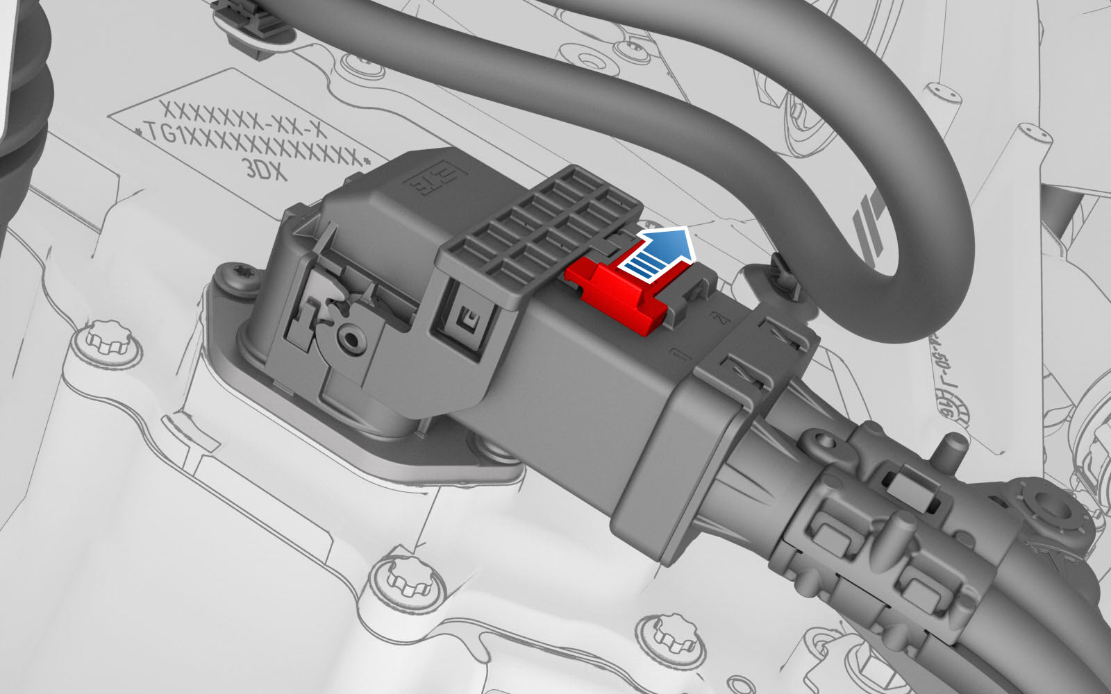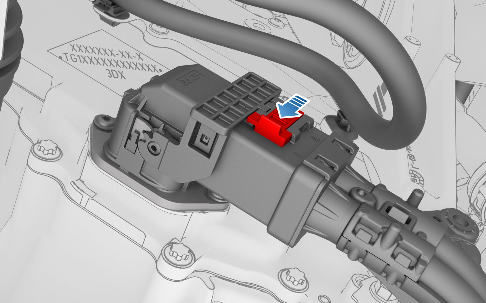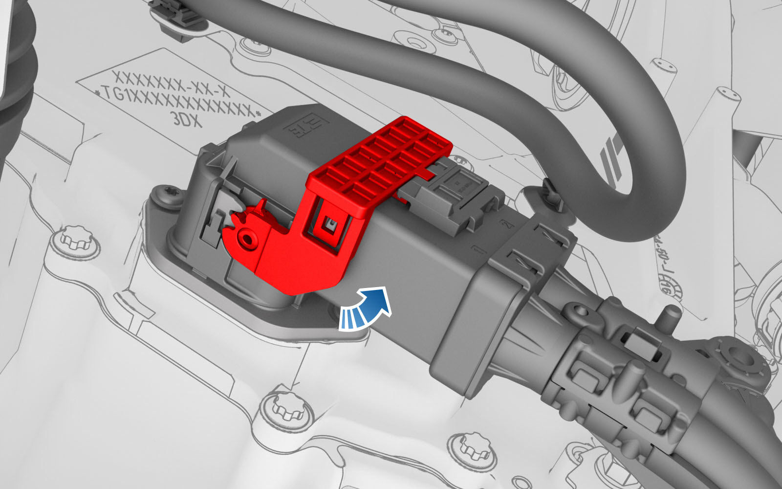 ![]() | 93 | Slide the red release tab to lock the front drive unit HV harness connector. | |
