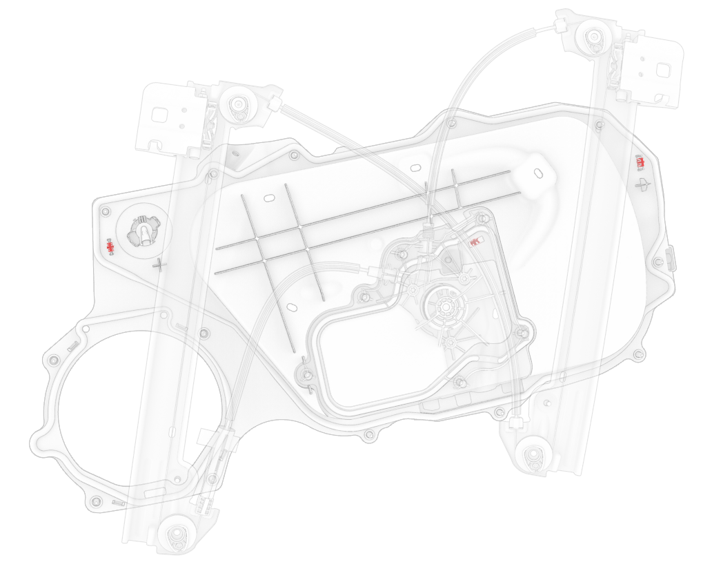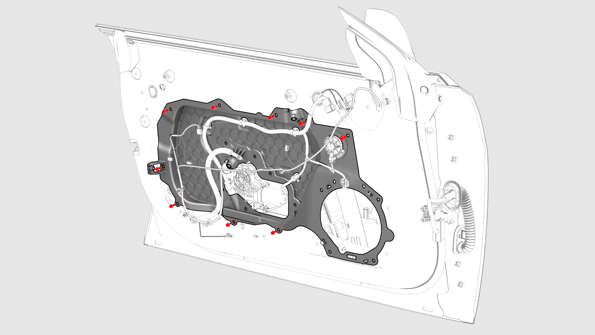 Closeout panel and window regulator shown, other assemblies hidden for clarity