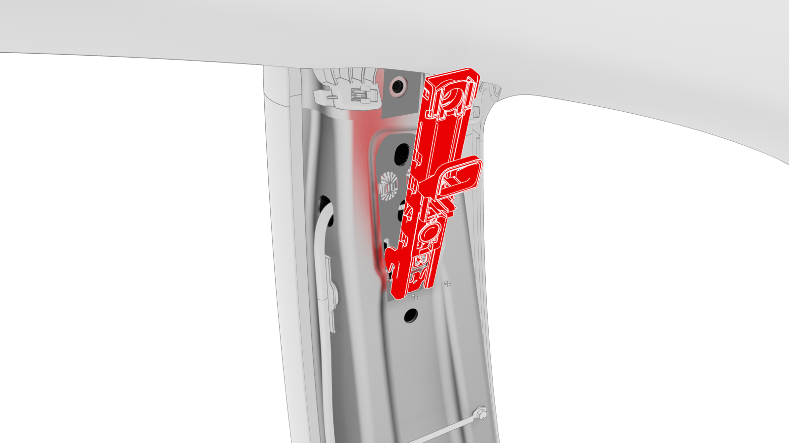 ![]() | 6 | Remove the bolt that attaches the adjustable top loop to the B-pillar. Note: The patchbolt is permanently attached to the adjustable top loop.