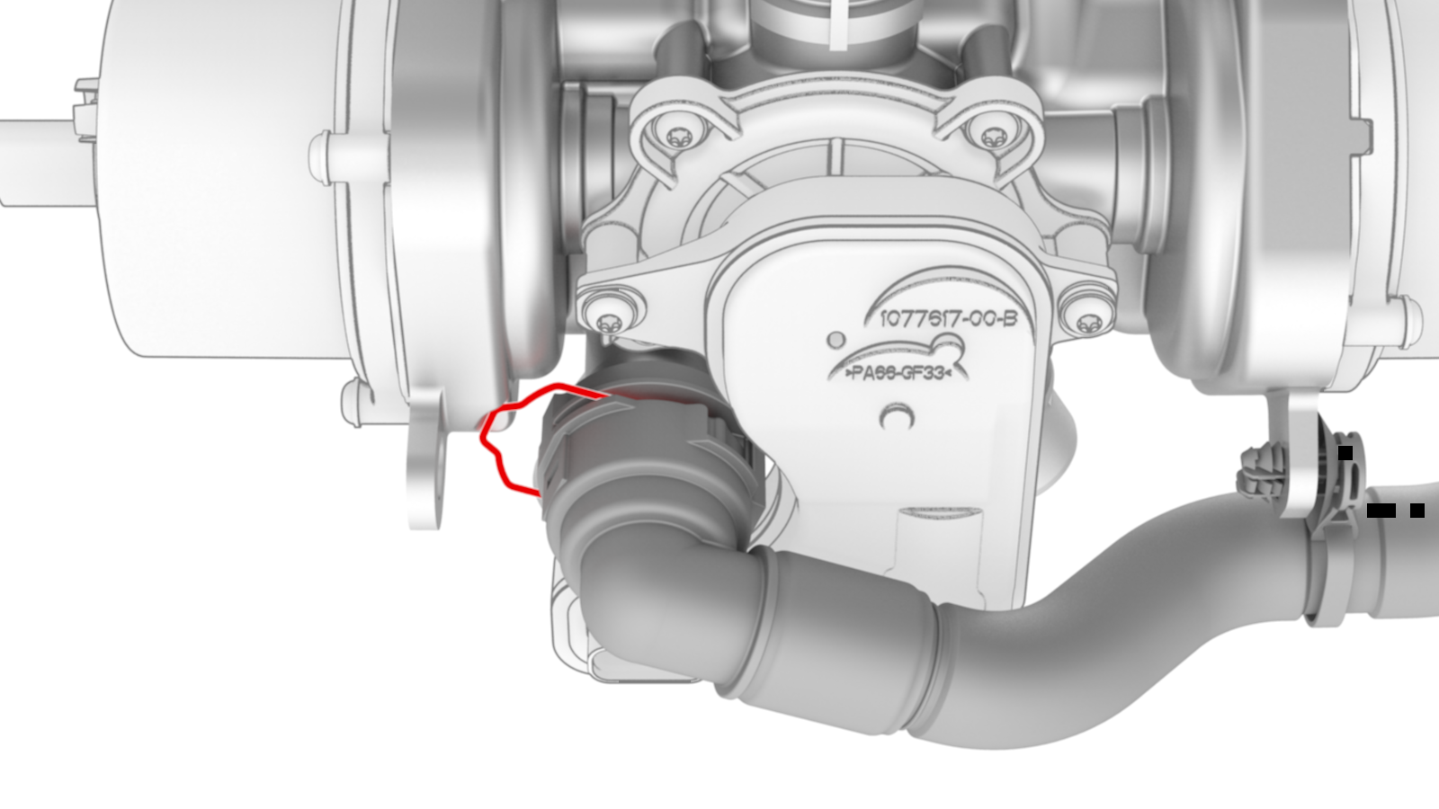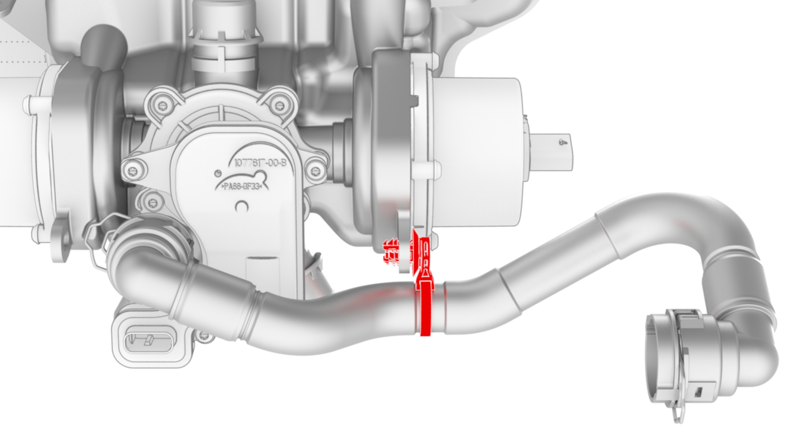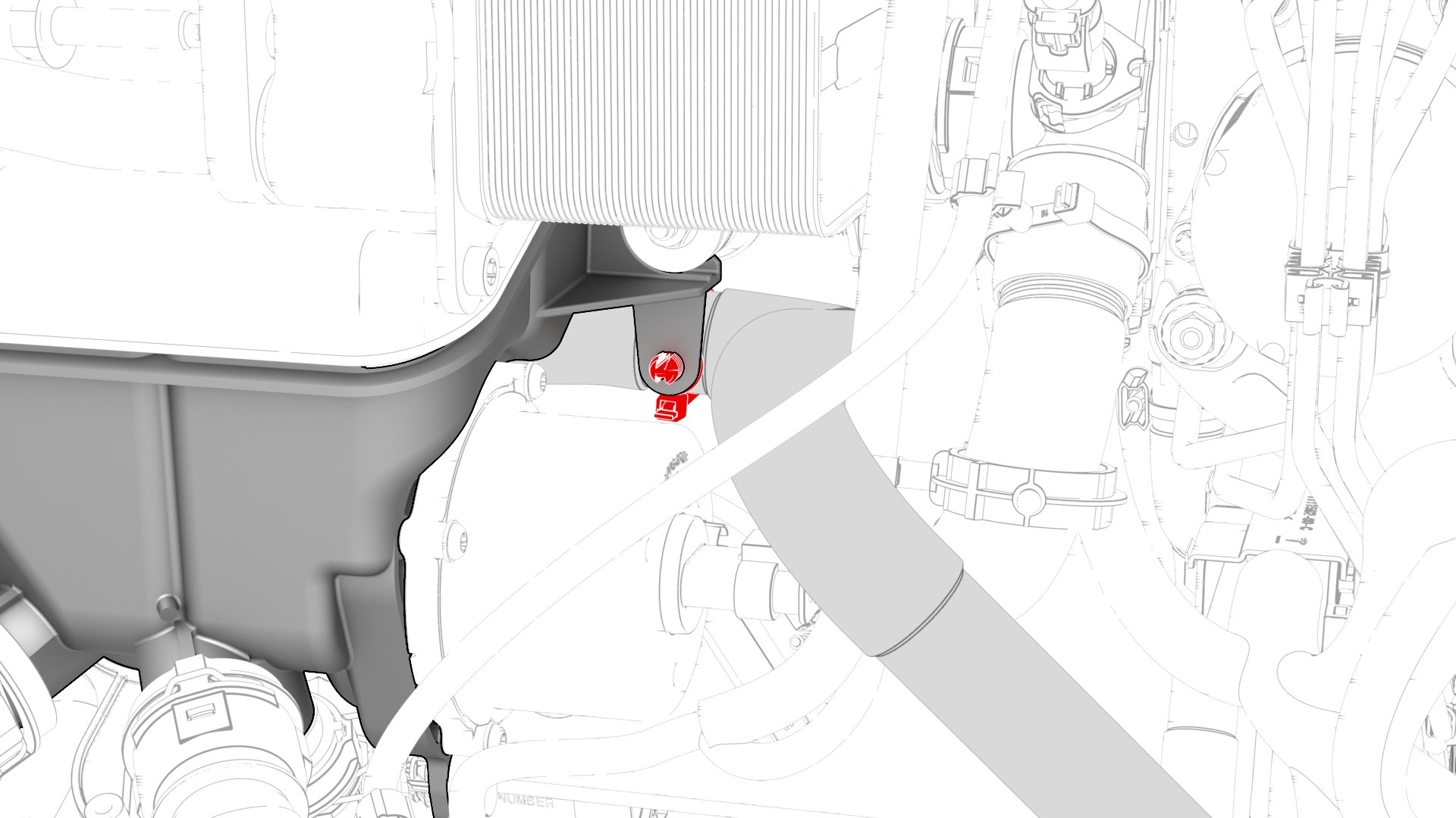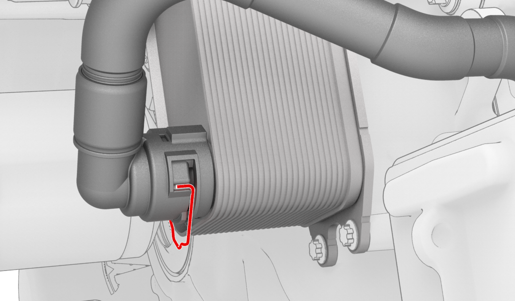 ![]() | 15 | Connect the coolant hose to the chiller and EXV assembly, and then install the clip. Note: Perform a push-pull test on the hose to verify that the hose is fully attached.