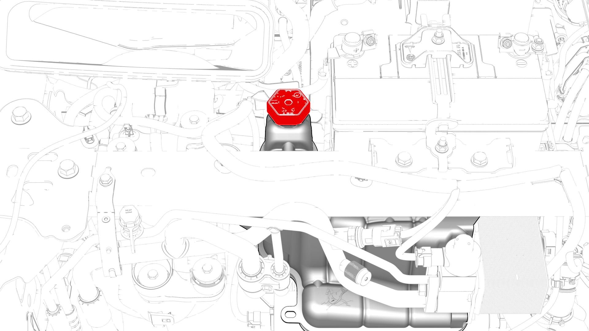 | 14 | Plug the front drive unit heat exchanger-superbottle hose and the heat exchanger coolant outlet. | ||