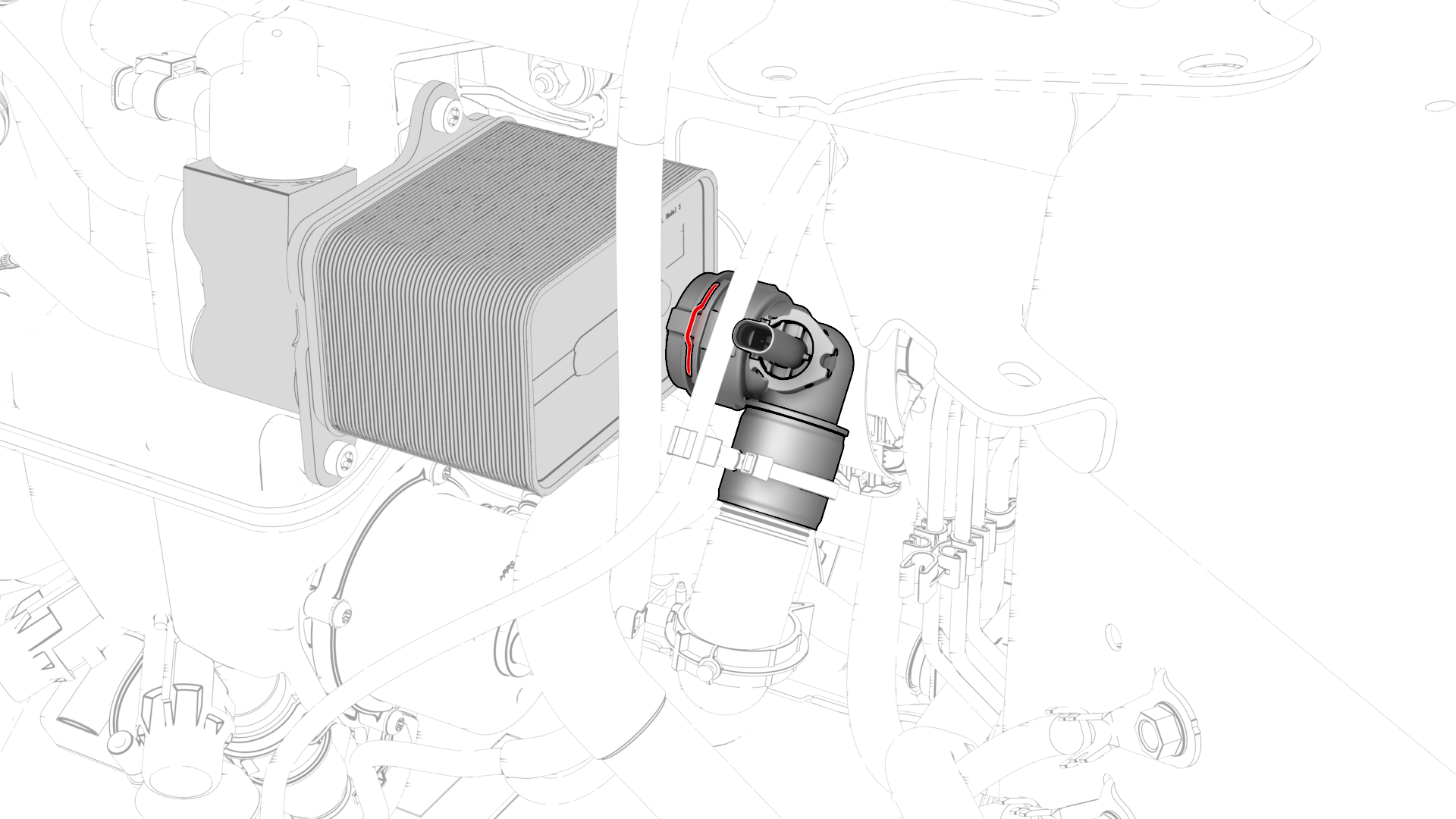 ![]() | 17 | Disconnect the electrical harness from the chiller and EXV assembly hose coolant temperature sensor connector. | |