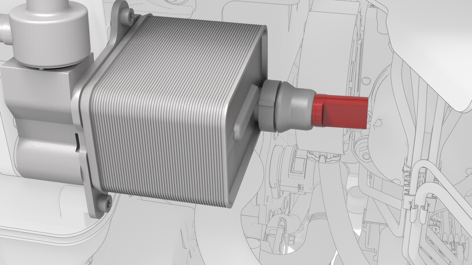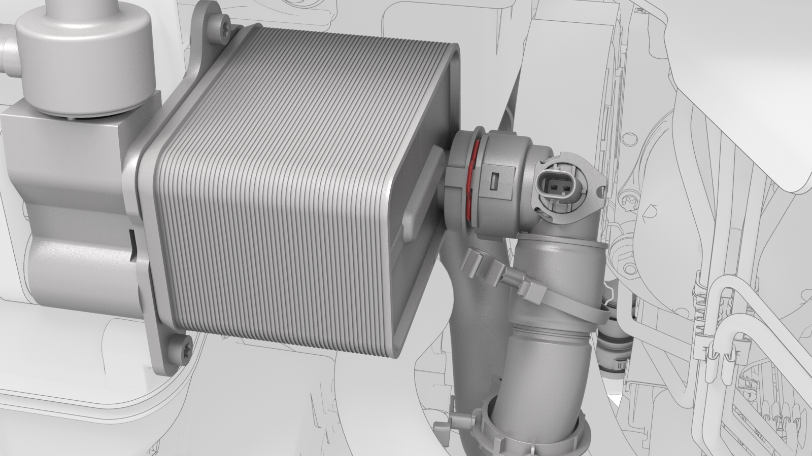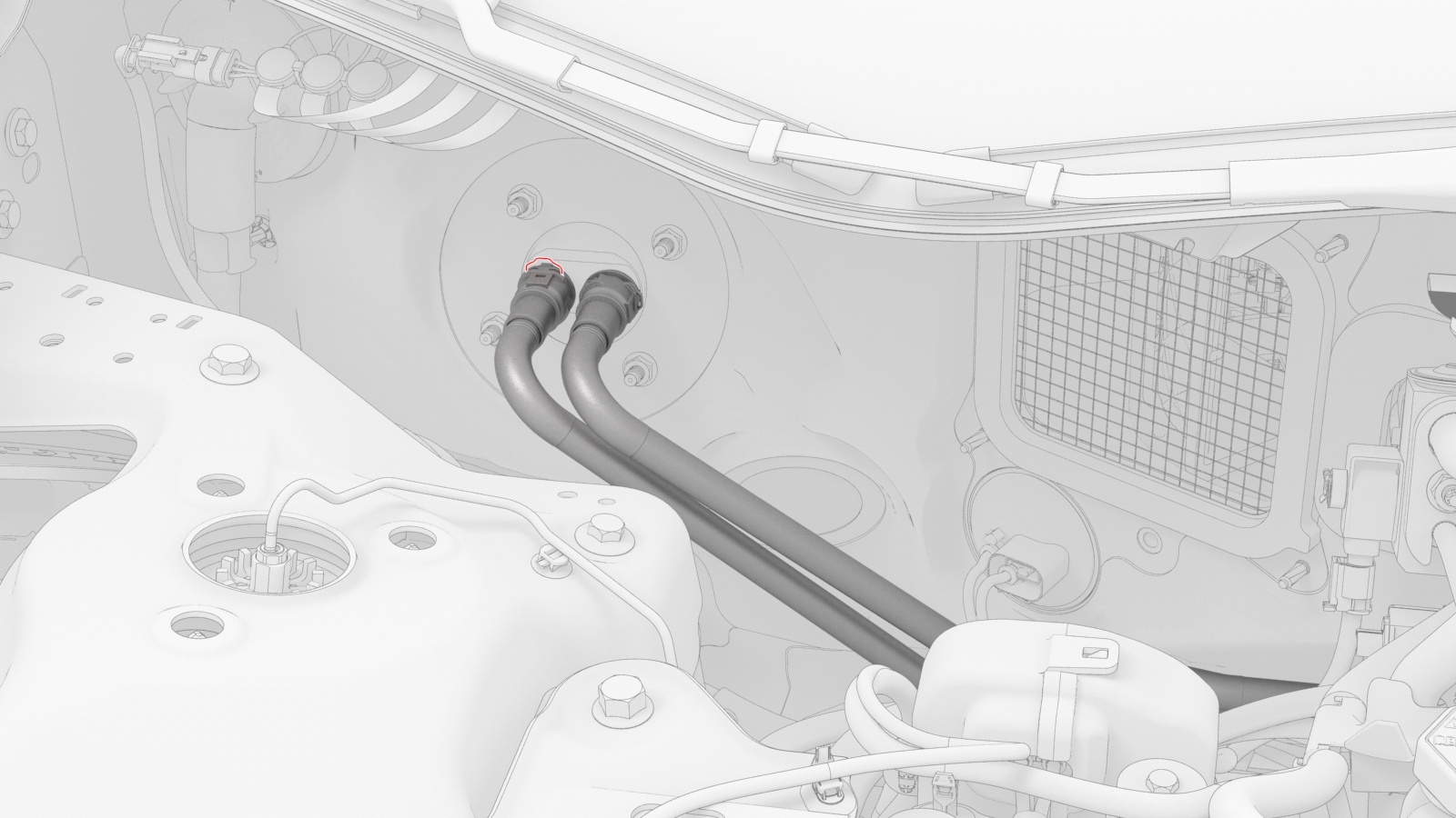 ![]() | 2 | Disconnect the electrical harness from the chiller and EXV assembly hose coolant temperature sensor connector. | |