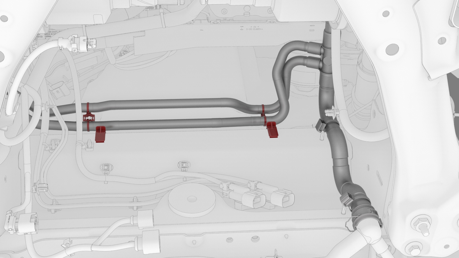 ![]() | 18 | Release the clips that attach the chiller-car computer and HV battery supply manifold hose to the vehicle. | |