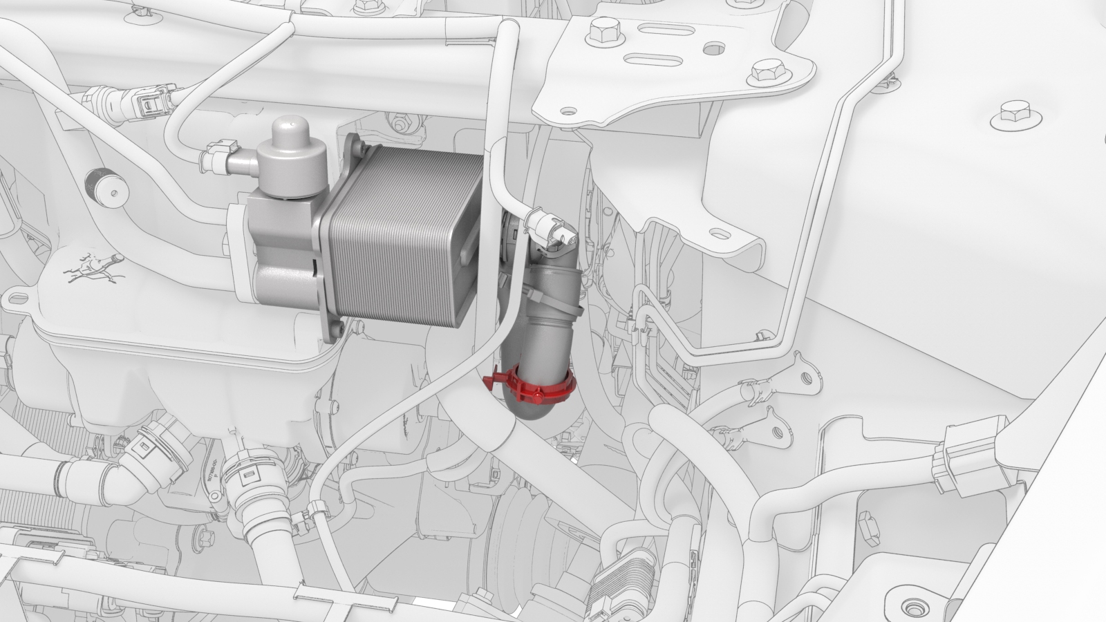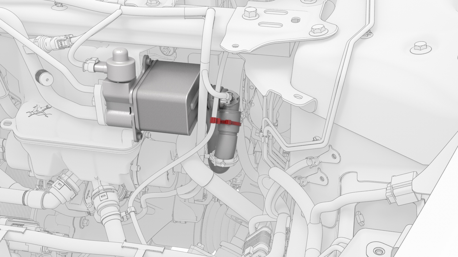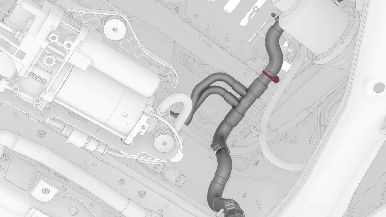 ![]() | 9 | Release the clip that connects the LH car computer coolant hose to the car computer coolant port, and then disconnect the hose. | |