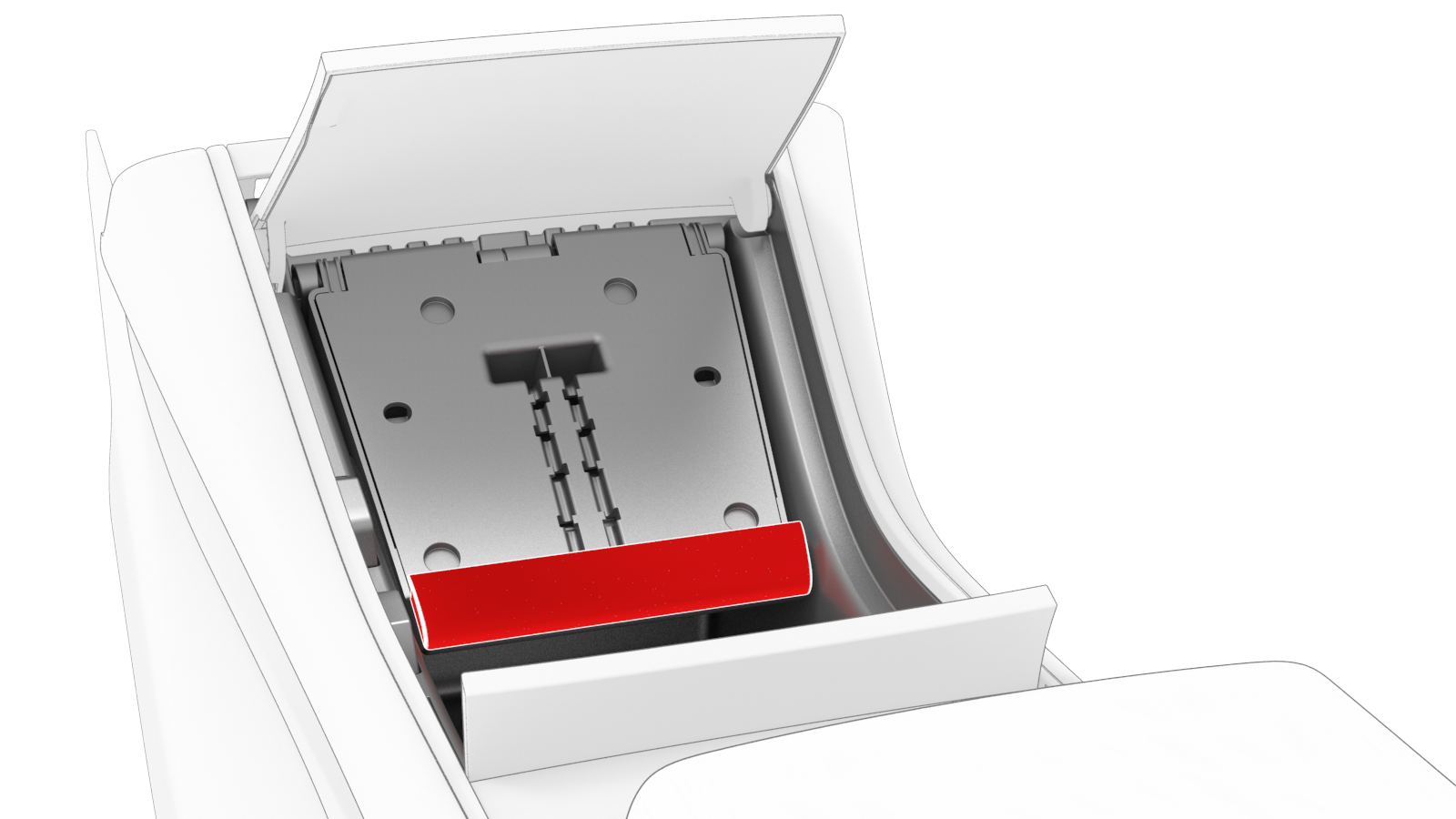 | 5 | Remove any cables from the center console phone tray routing, if installed, and then move the cables through the opening in the center console phone tray. | ||