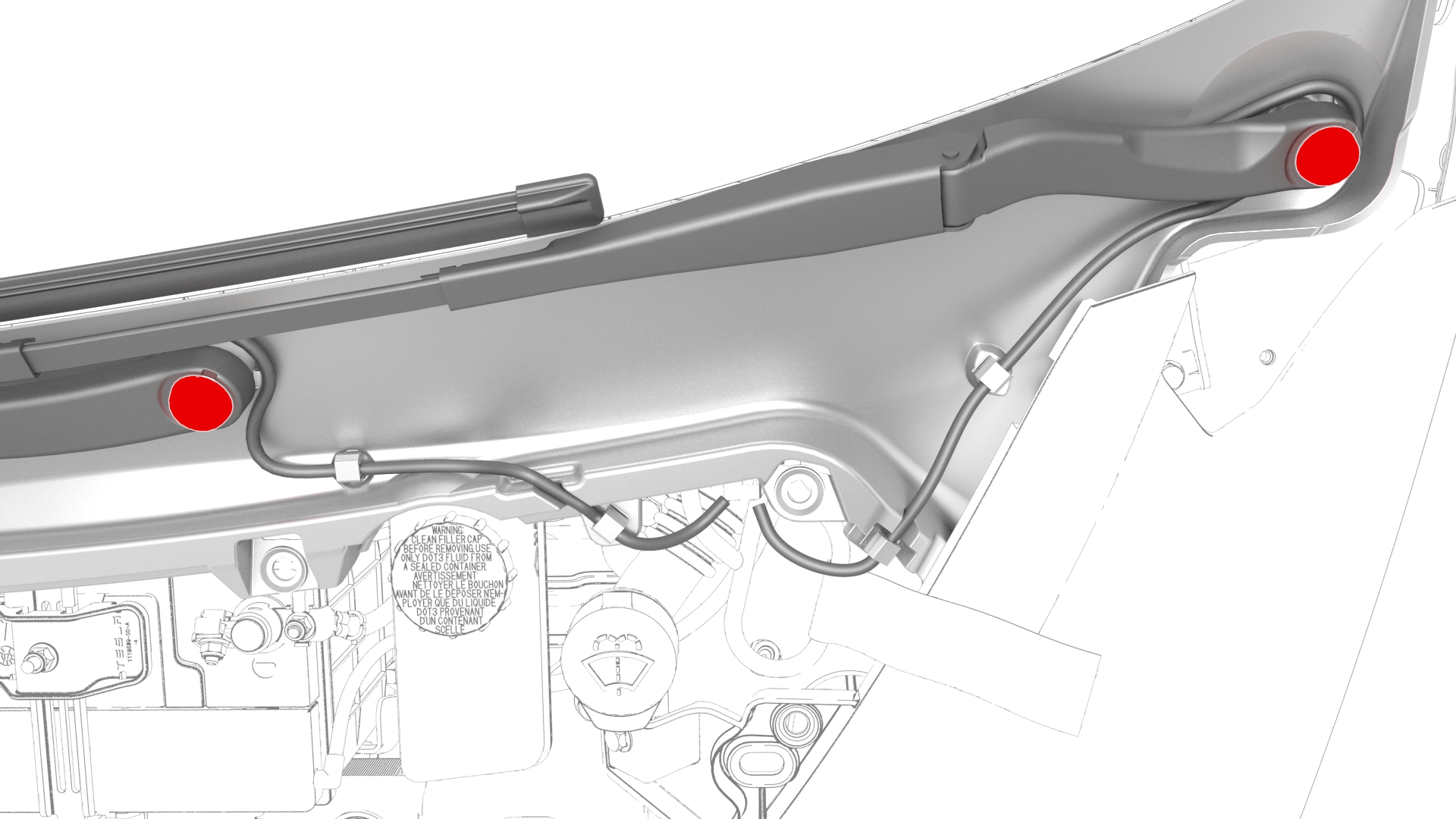 | 4 | Release the clips (x2 for each arm) that attach the LH and RH wiper arm hoses to the vehicle. | ||