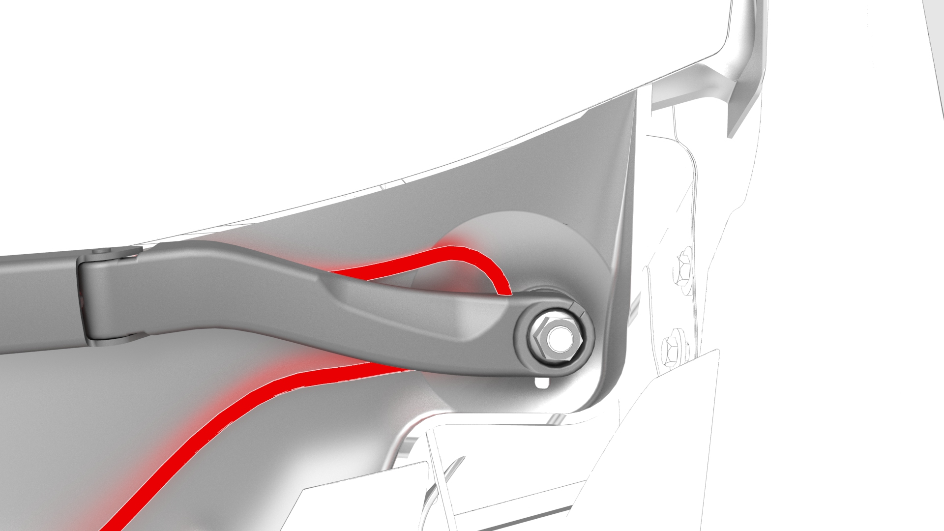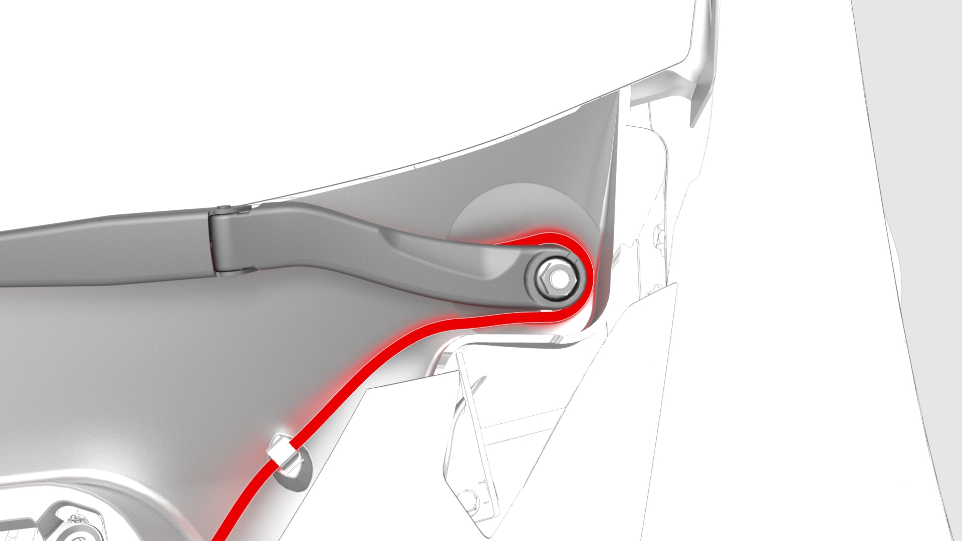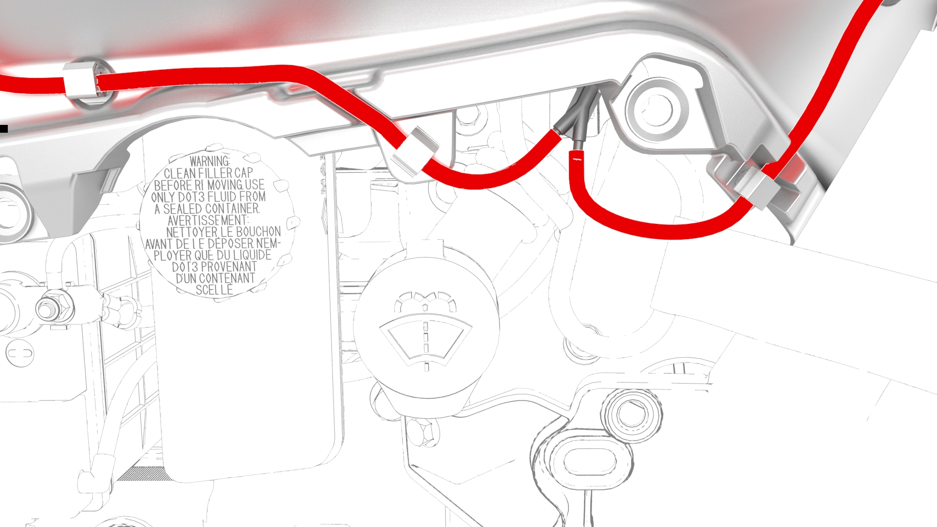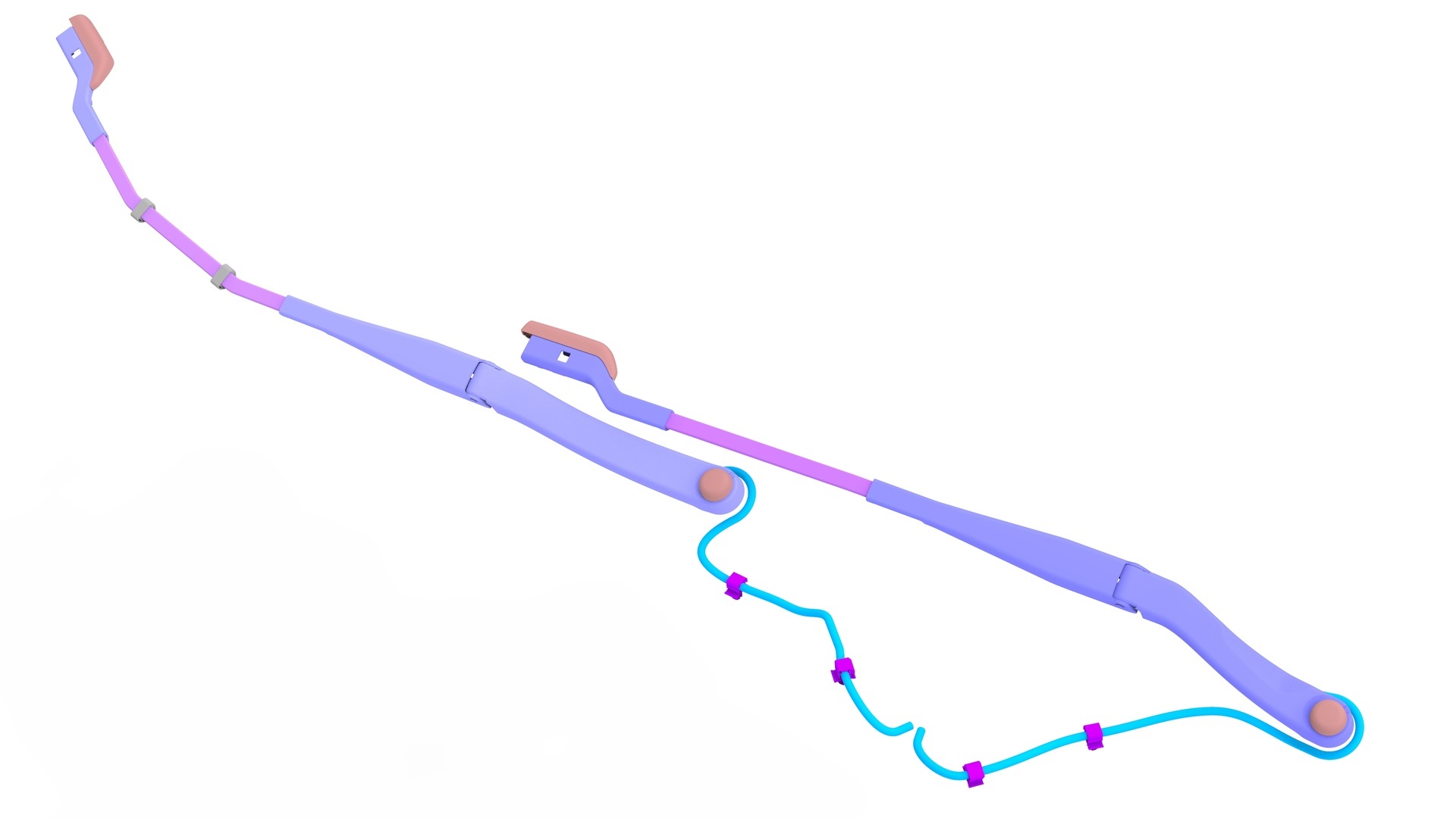 Note: Make sure to route the hoses behind the wiper arm pivot joint.