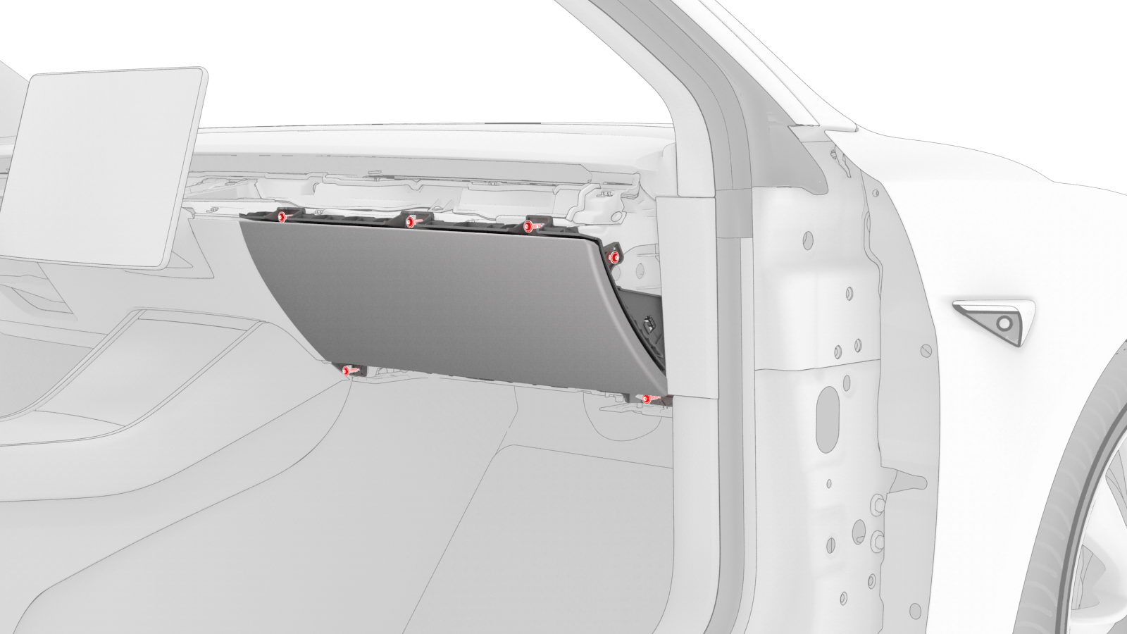 ![]() | 11 | Remove the screws (x6) that attach the glove box to the IP carrier. | |