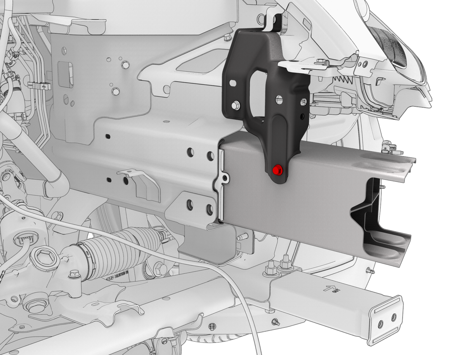 ![]() | 2 | install the bolt that attaches the LH front fender support to the LH front crush can.![]() Torque 35 Nm | |