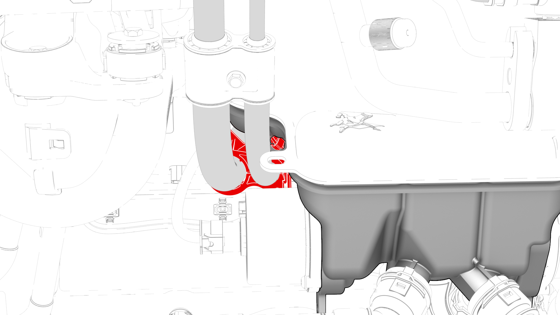 ![]() | 21 | Remove the bolt that attaches the suction/liquid line bracket to the shock tower brace, and then separate the bracket from the brace. | |